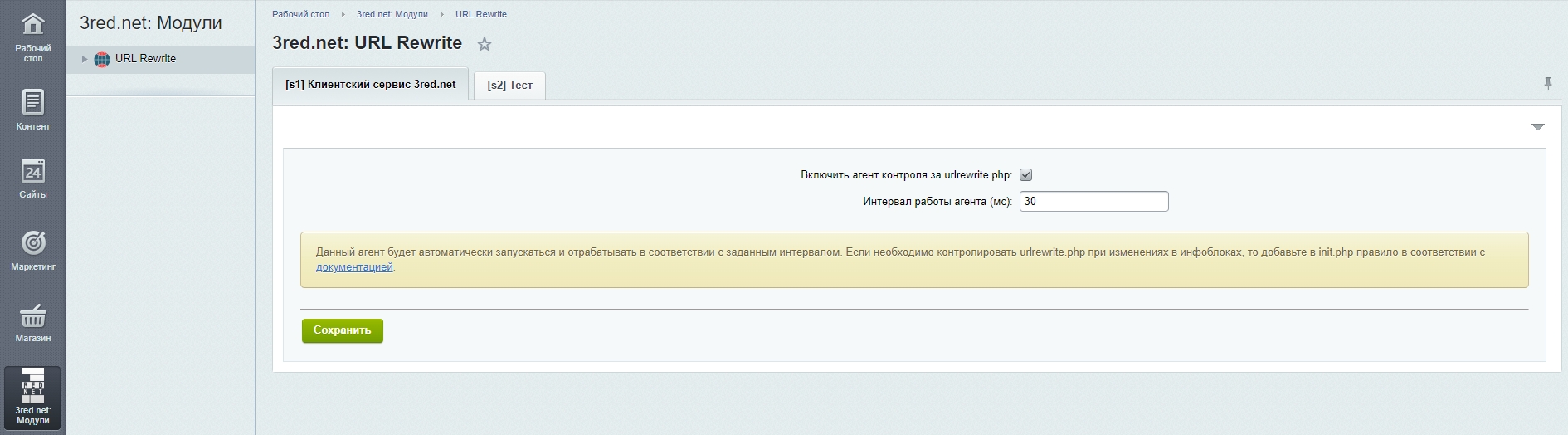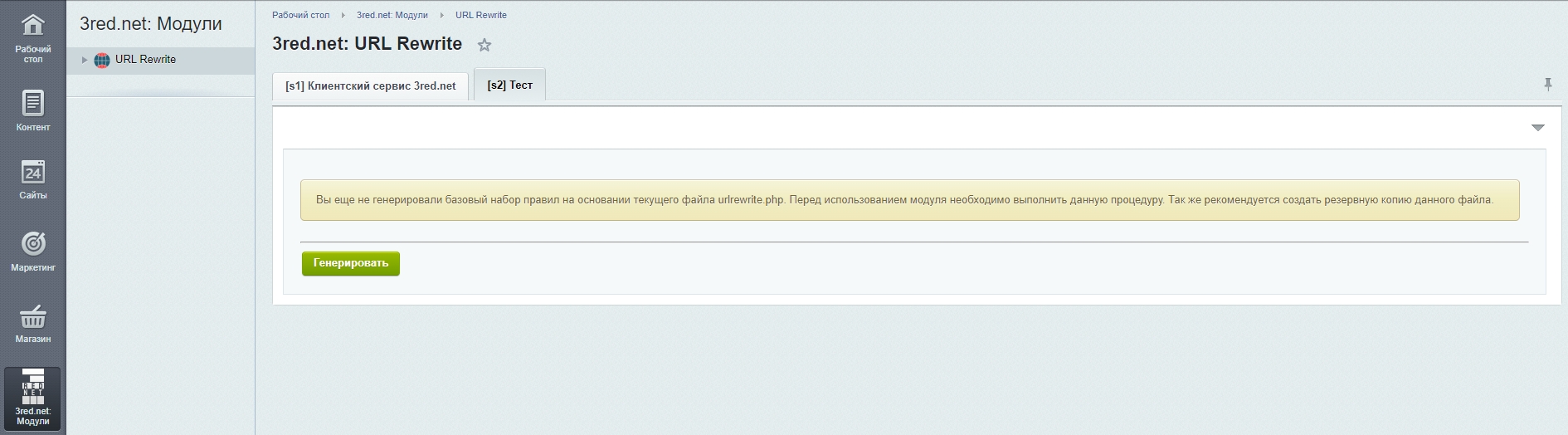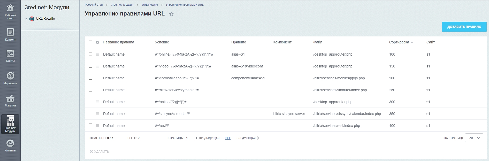 URL Rewrite Controller предназначен для сохранения правил маршрутизации urlrewrite.php в таблице MySQL и дальнейшего контроля их соблюдения. Если вы пишете свои правила маршрутизации, а изменение настроек компонентов ломает ваши правила, то данный модуль позволит вам сохранить все внесенные вами изменения.