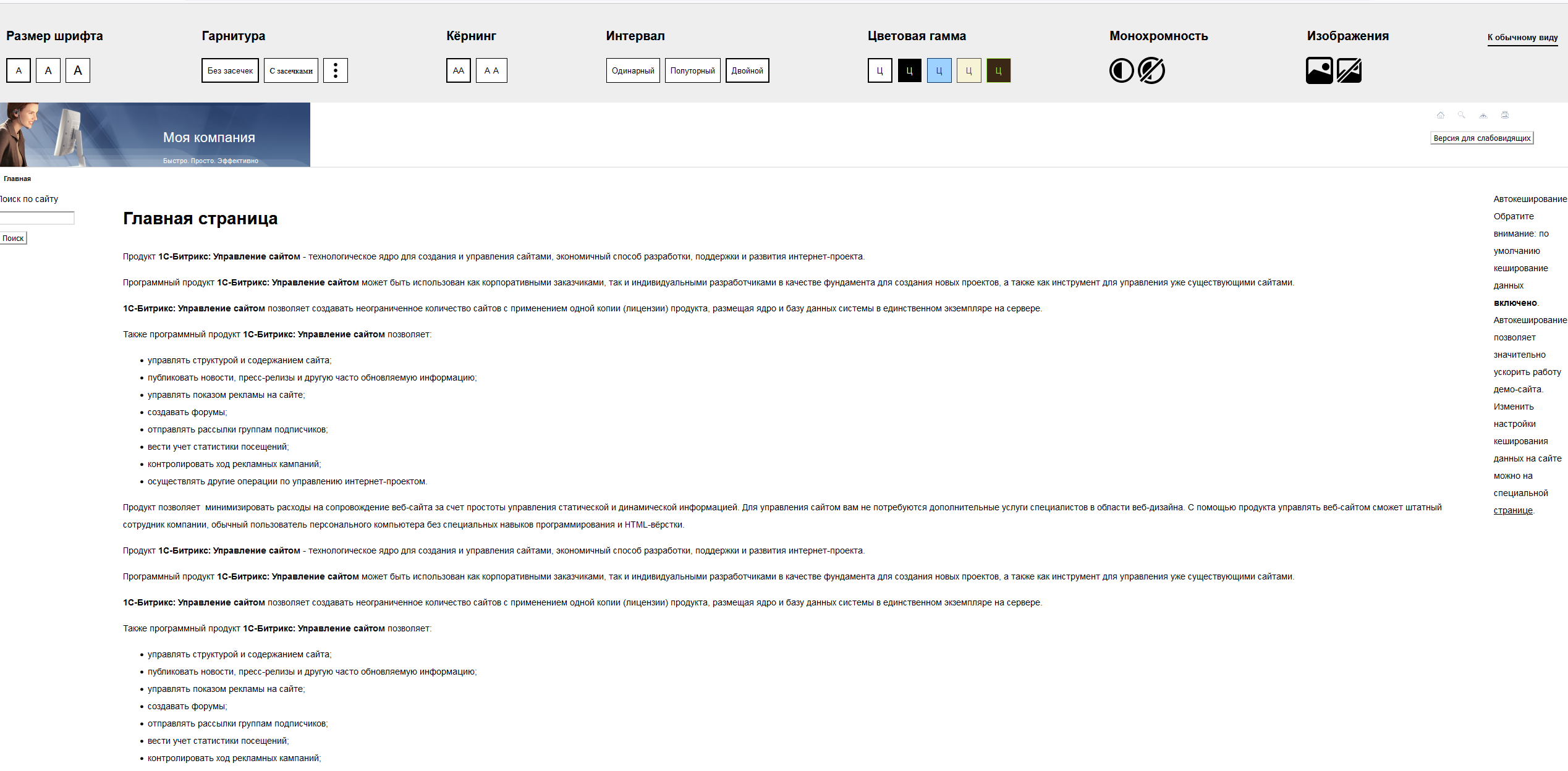 1. Автоматическая генерация. Модуль динамически создает версию для слабовидящих без необходимости ручного дублирования контента.