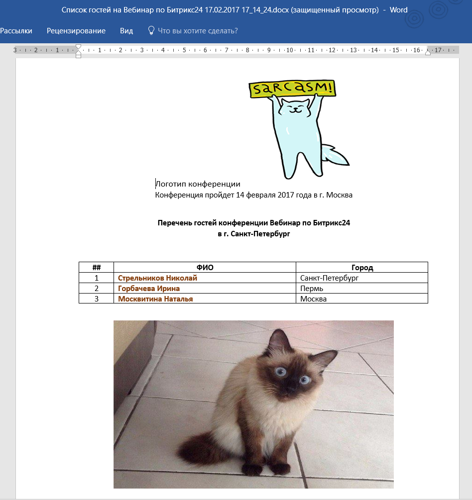 Предварительно следует создать документ с расширением .docx, который будет шаблоном для генерации файлов. В нём нужно задать имена полей для подстановки.