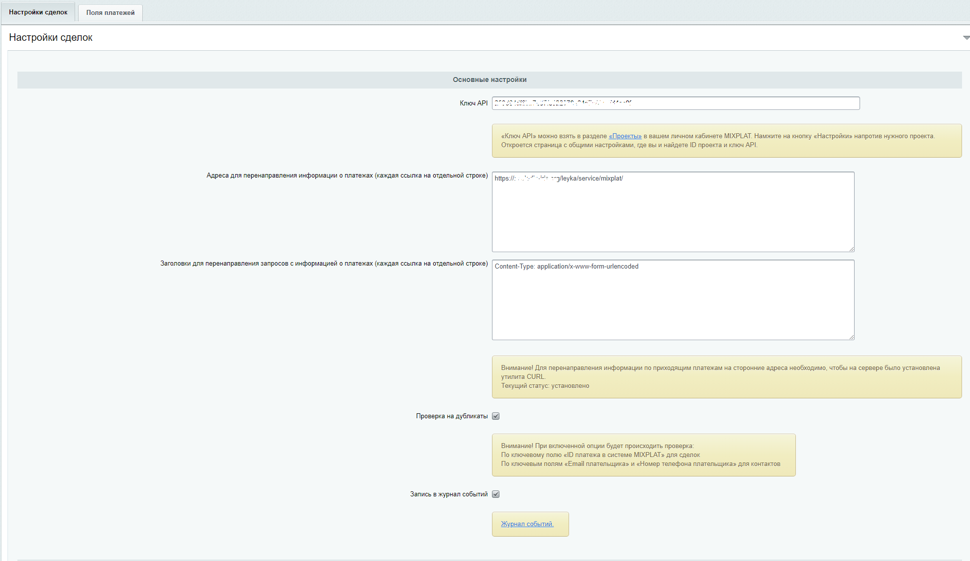 2. для работы отправки уведомлений на другие URL-адреса необходим установленный на сервере плагин CURL.