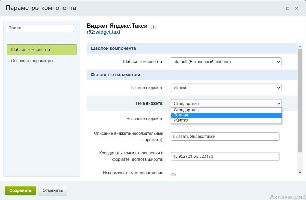 Решение позволяет разместить на сайте виджет Яндекс.Такси. А также выбрать внешний вид виджета.