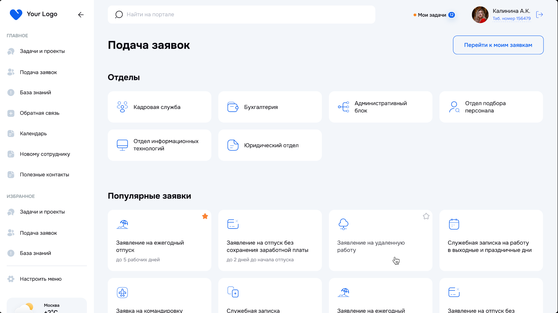 Все сервисы для самообслуживания в одном окне: здесь можно отправлять заявки, отслеживать их статус и скачивать документы. Доступна гибкая настройка маршрута для согласования заявок.