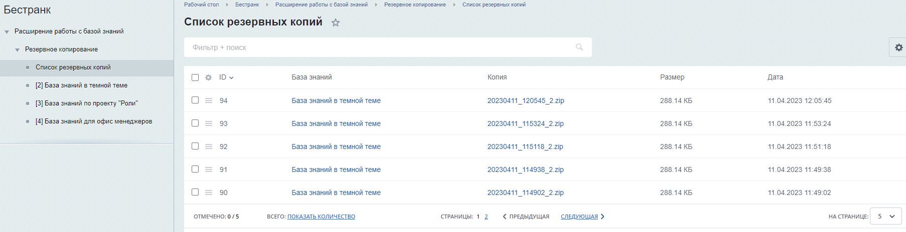 Возможна настройка создания резервных копий по расписанию.