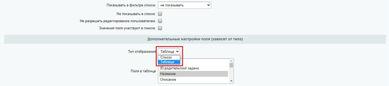 В настройках создаваемого поля можно выбрать тип отображения привязанных задач: