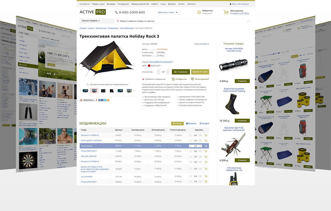 7. Активный отдых. Спортивные товары. Охота, рыбалка. Спортивное оружие (ActivePRO). Профессиональный интернет магазин (рус. + англ.)
