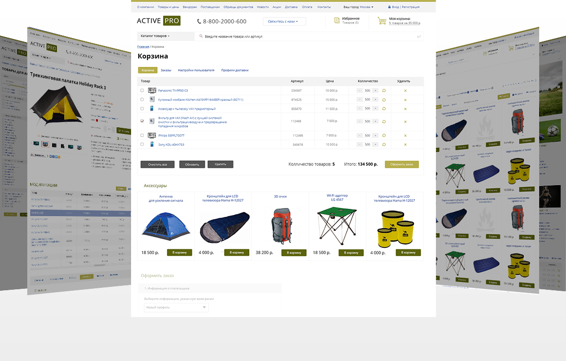 Поле корзины может тянуться по всему сайту: клиент добавляет товары в корзину и сразу видит корзину (реализован принцип заказа, аналогичный в 1С). Кроме того, виджет содержит разделы: «Помощь», «Сравнение», «Недавно просмотренные товары», «Избранное» для быстрого доступа к ним.