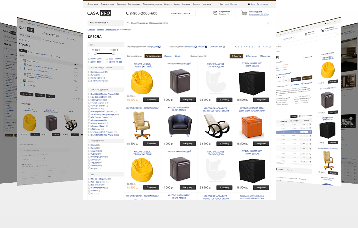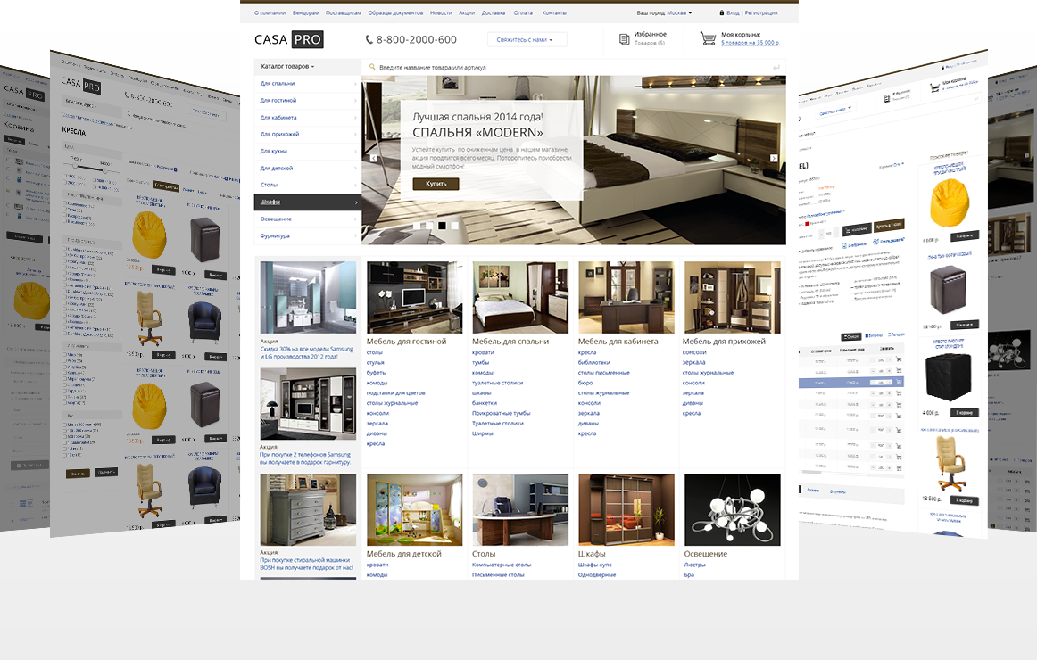 Выбрав шаблон CasaPRO вы получите результат интеллектуального труда лучших специалистов в области проектирования и создания интернет магазинов на платформе 1С-Битрикс.
