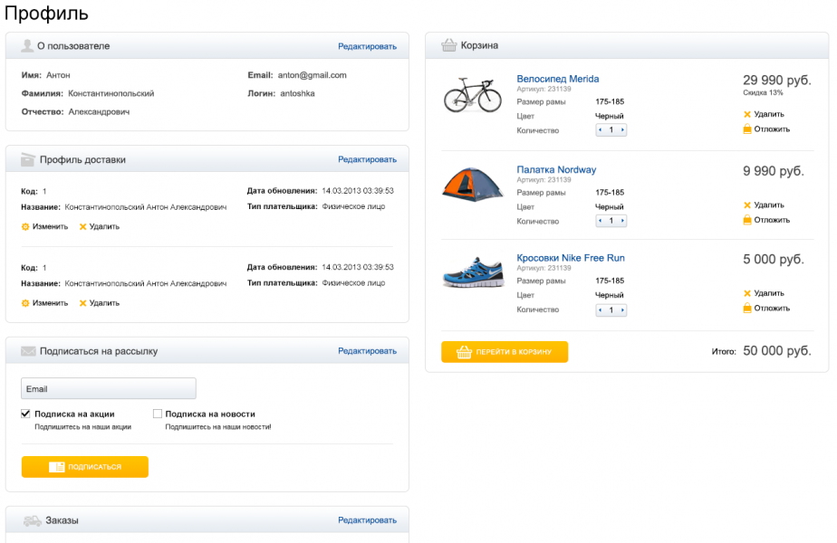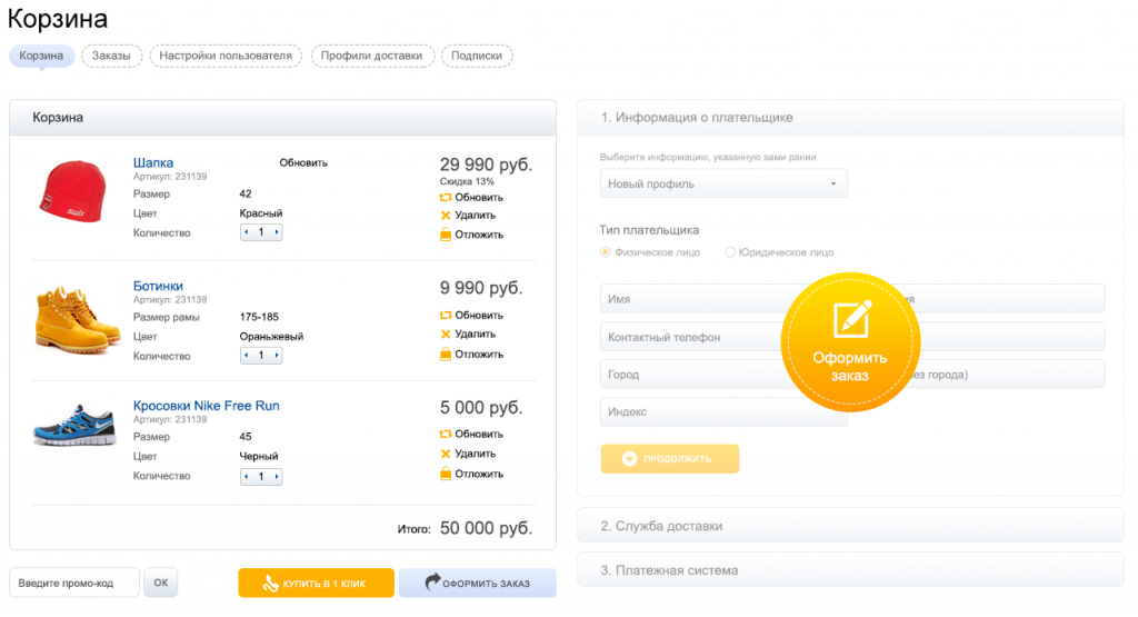 11. Единое окно редактирования корзины и оформления заказа позволит значительно снизить количество «брошенных корзин». А если такое и случиться, в административной панели будет возможность найти хозяина такой корзины и не потерять клиента.