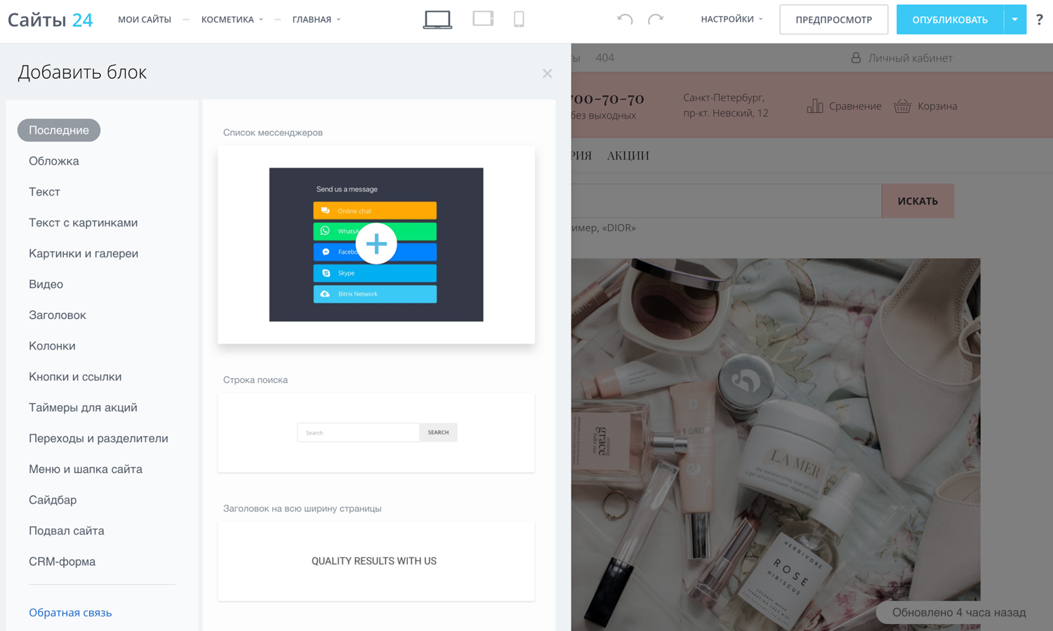 Интернет-магазин «Крайт: Косметика.Beauty24» работает на «Сайтах 24» —