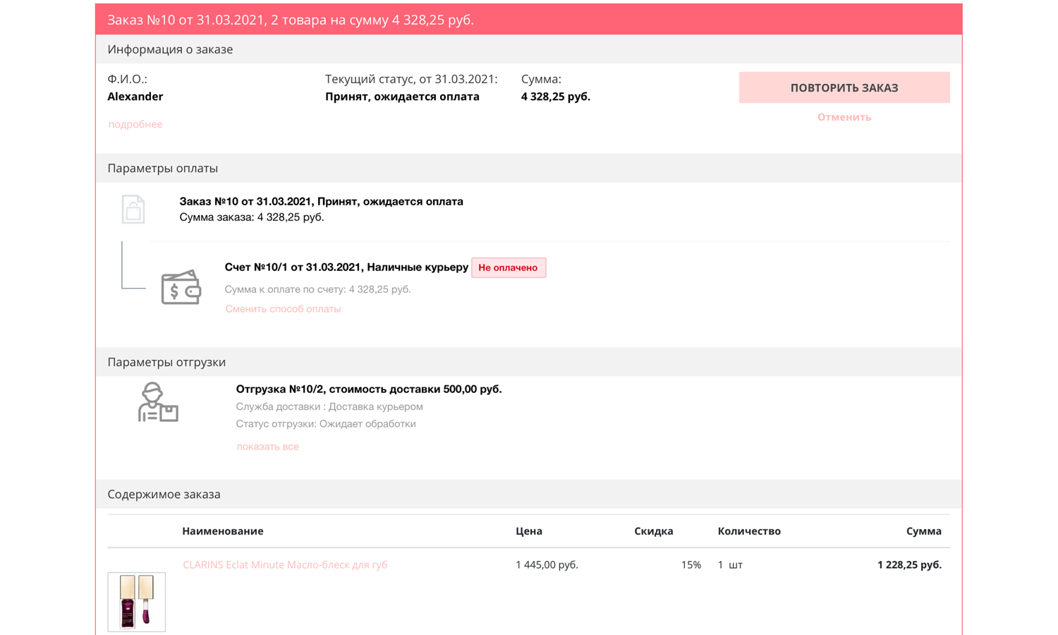 отменять и повторять заказы. А наличие функционала «Личный счёт»* позволит вам