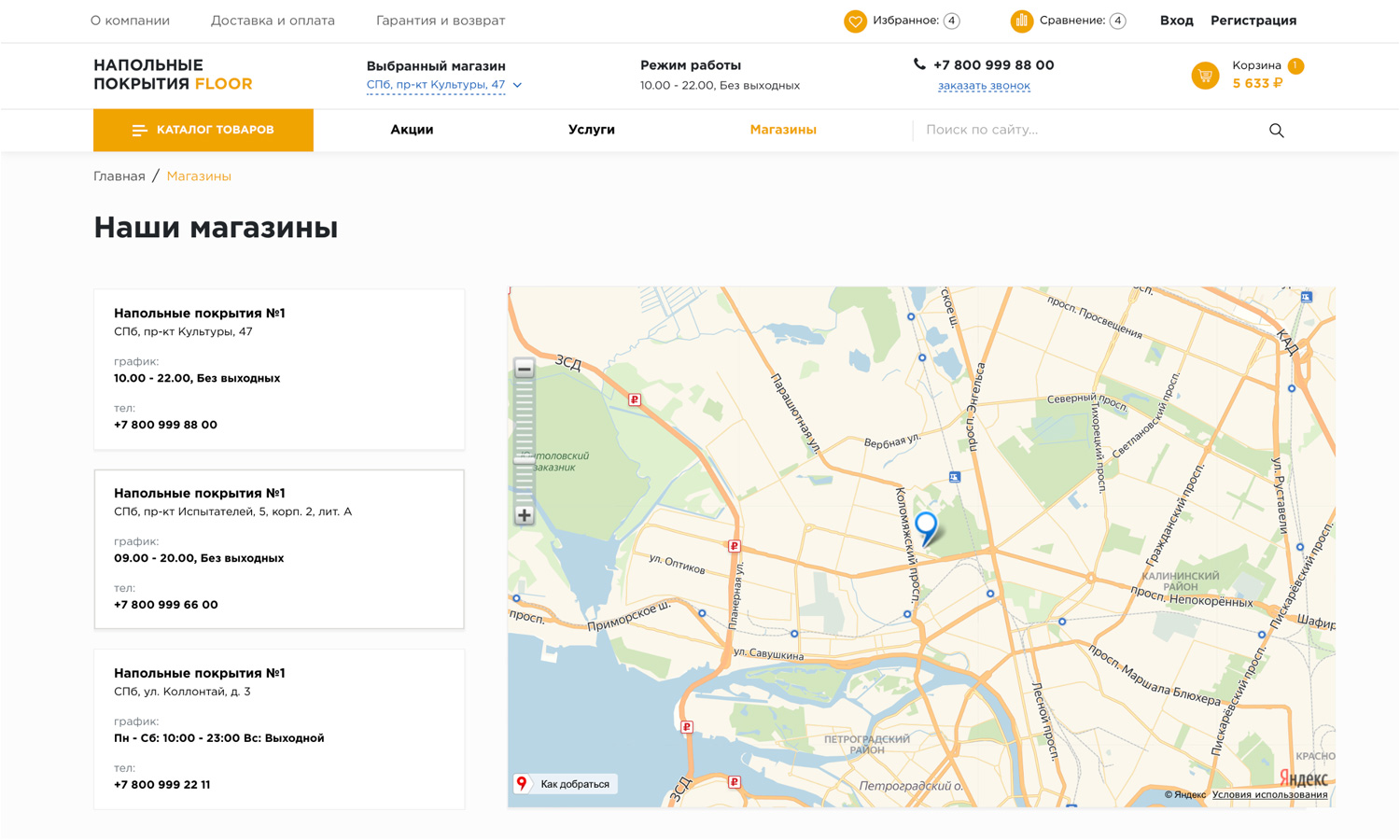 А перейдя на страницу «Магазины» ознакомиться с адресами и