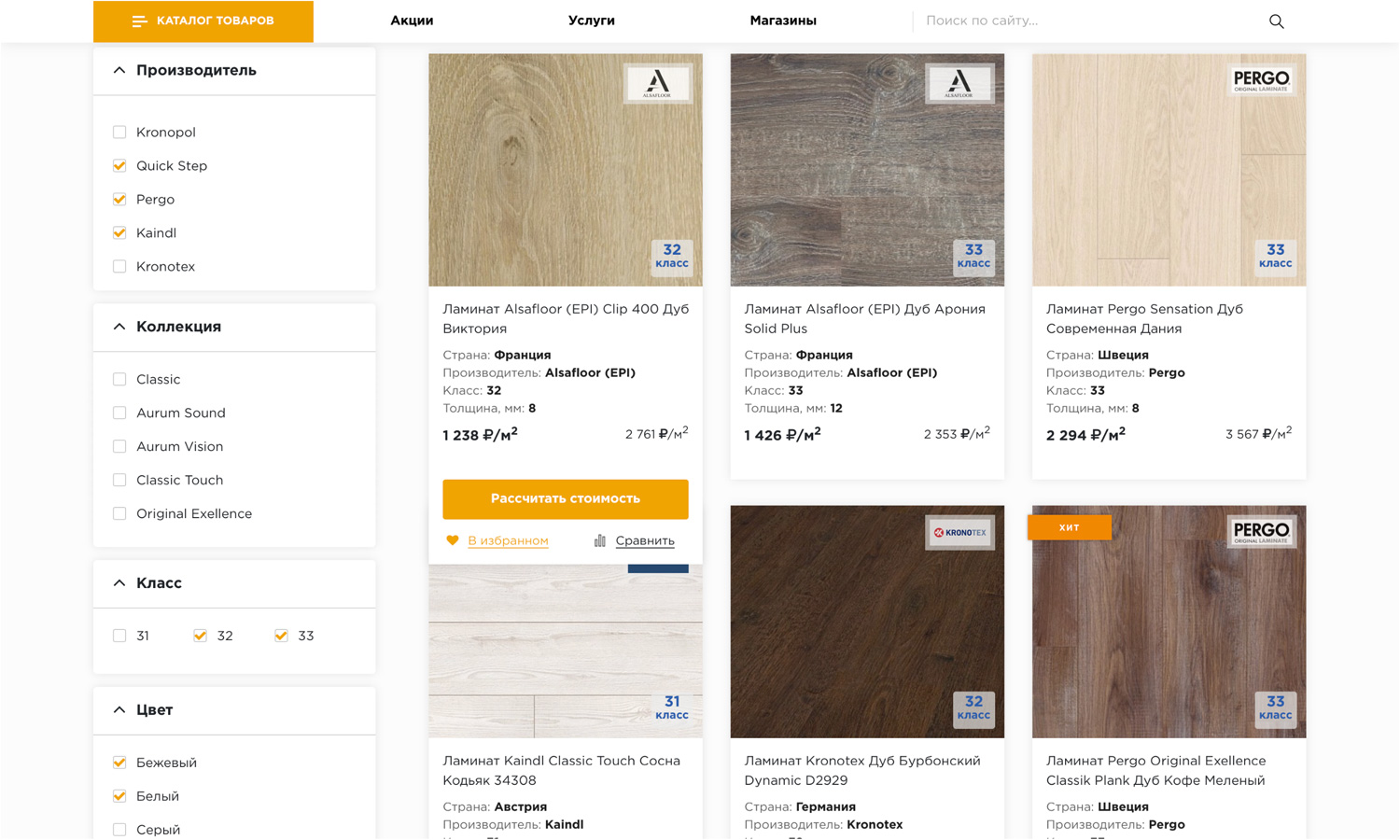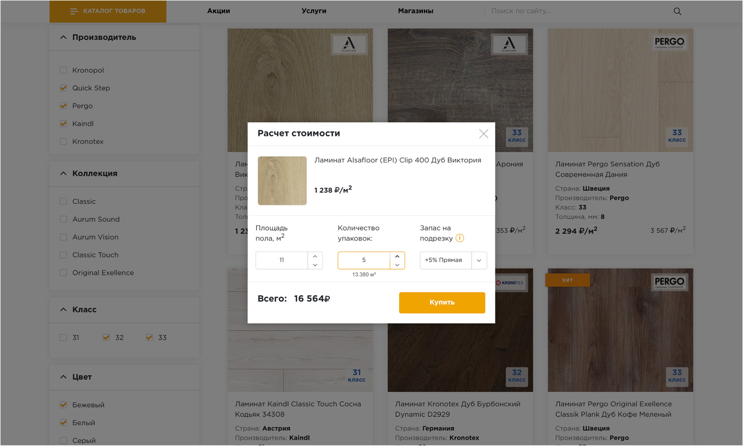 в зависимости от метража и способа укладки прямо на странице каталога.
