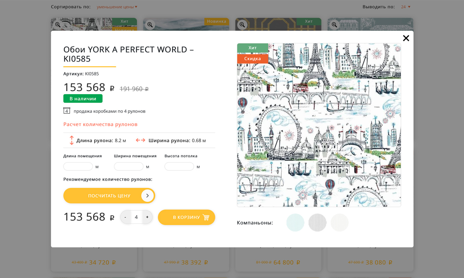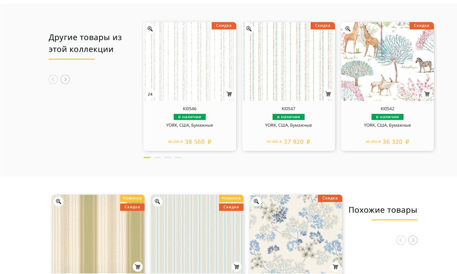 Если в коллекции выбранного товара есть другие обои, они отобразятся в карусели.