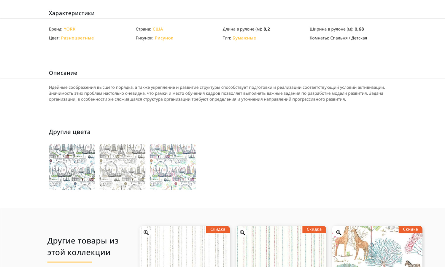 «Крайт. Обои.Paper» имеет идеальную страницу товара для продажи обоев.