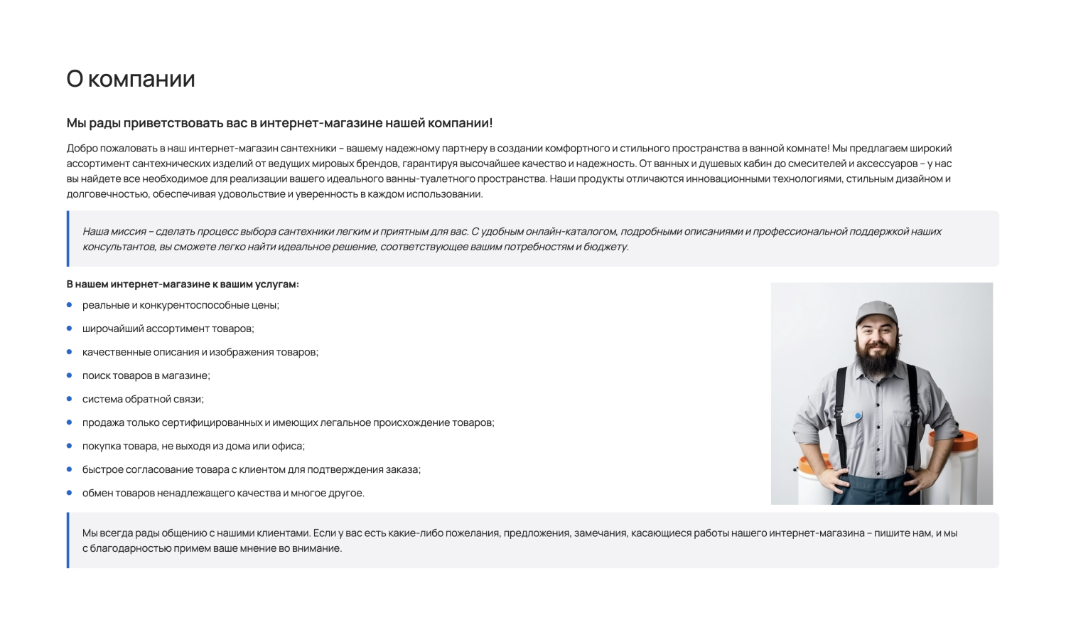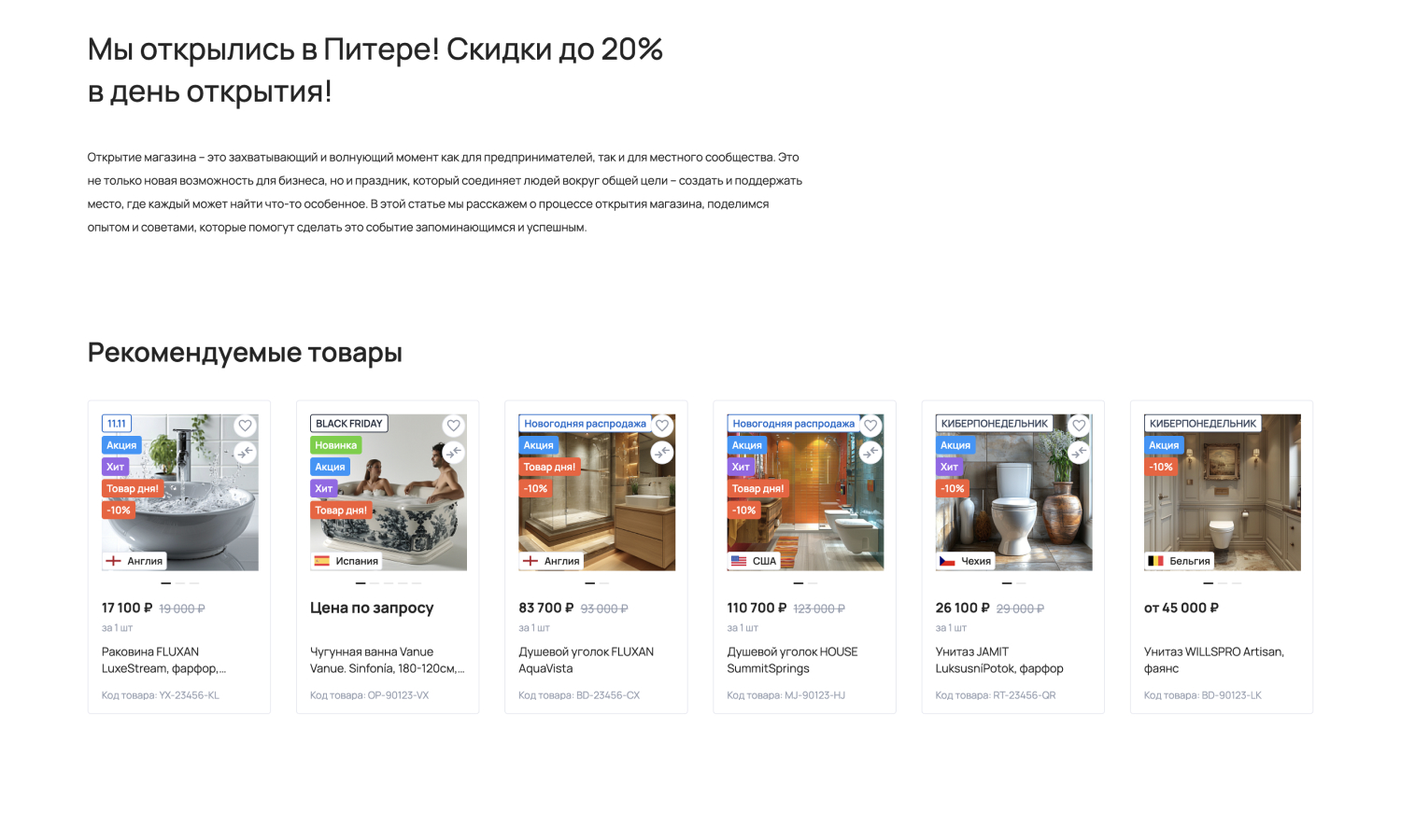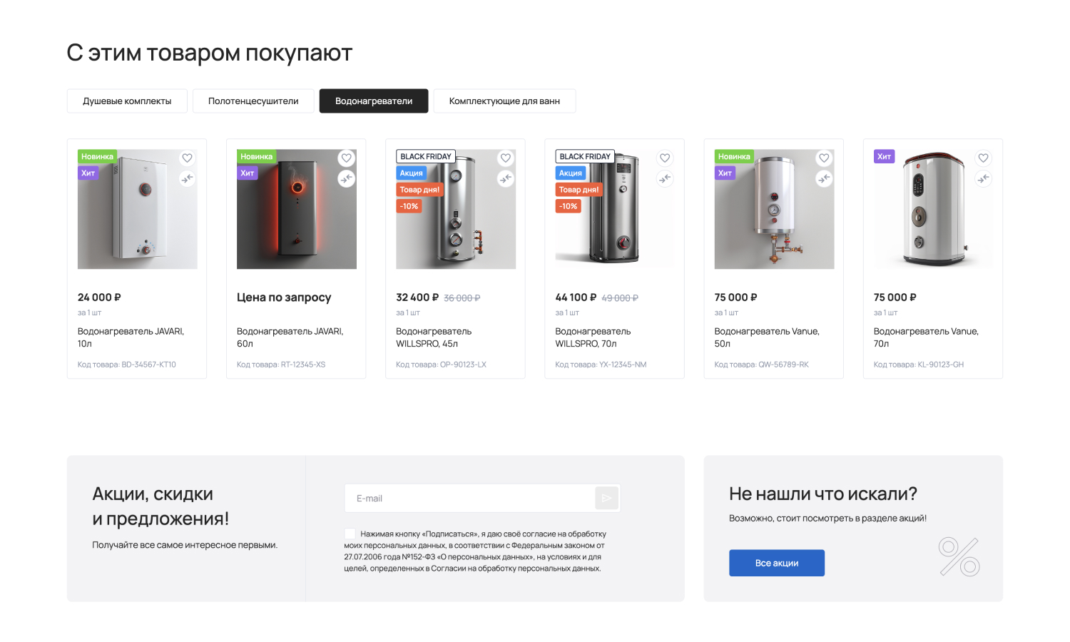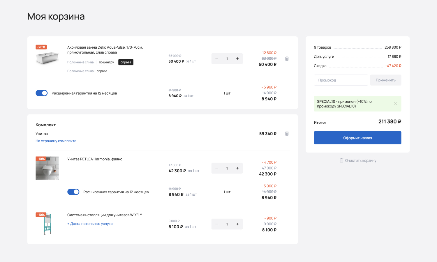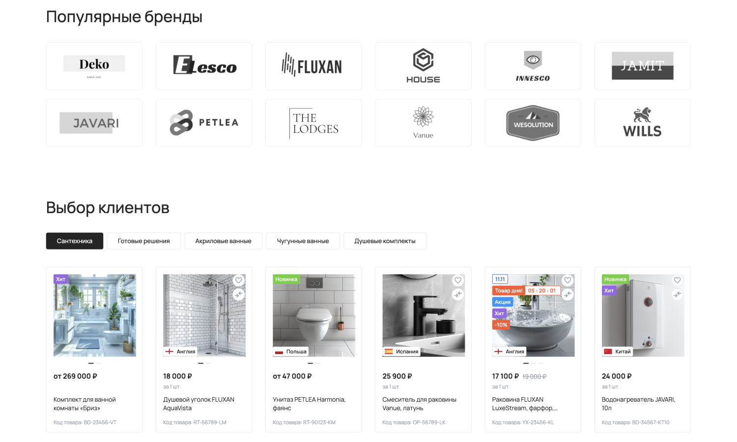 С помощью отраслевого решения «КРАЙТ: САНТЕХНИКА.SPECIAL» вы сможете запустить успешный интернет-магазин сантехники, оборудования, отопительных систем, водоснабжения, климатической техники, инженерной сантехники, мебели и мебельных комплектов для ванной комнаты, керамической плитки, товаров для клининга, товаров для дачи, товаров для бани и сауны, смесителей, ванн, душевых кабин, раковин, унитазов, водонагревателей, полотенцесушителей, теплых полов, кондиционеров, вентиляторов, очистителей и увлажнителей воздуха, котлов, радиаторов, обогревателей, каминов и печей, парогенераторов, вентиляции, арматуры, насосов, труб, фитингов, счетчиков воды, фильтров для воды, кулеров для воды, керамогранита, мозаики, зеркал, садовой техники, систем полива, шлангов и комплектов для полива, моек высокого давления, биотуалетов, бассейнов, фонтанов.