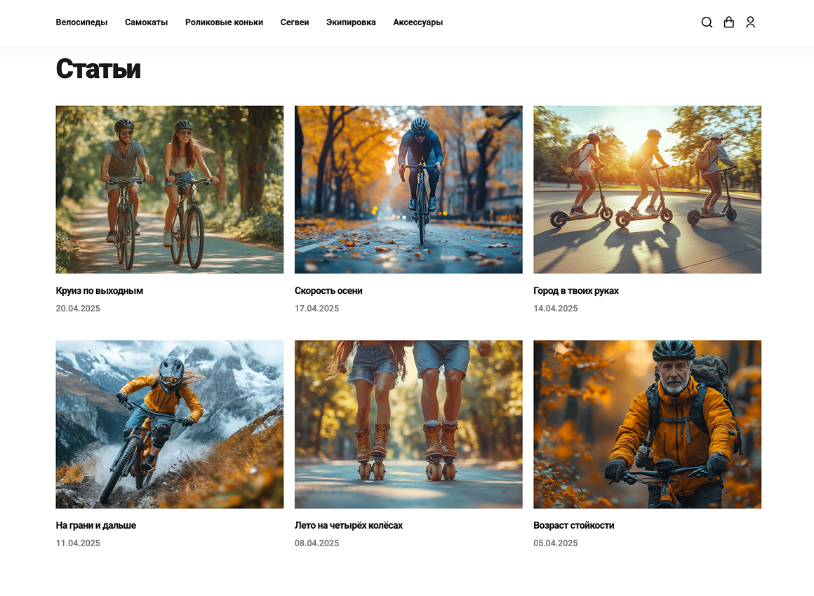 С помощью отраслевого решения «КРАЙТ: SPORT» вы сможете запустить успешный интернет-магазин товаров для спорта, спортивного питания, товаров для охоты и рыбалки, товаров для туризма и отдыха, велосипедов, тренажеров, экипировки и снаряжения, спортивной одежды, спортивной обуви, рюкзаков и сумок, товаров для фитнеса, товаров для йоги, товаров для бокса, товаров для единоборств, товаров для футбола, товаров для баскетбола, товаров для волейбола, товаров для гандбола, товаров для хоккея, товаров для большого тенниса, товаров для настольного тенниса, товаров для бадминтона, товаров для бильярда, товаров для плавания, товаров для серфинга, товаров для сноубординга, товаров для горных лыж, беговых лыж, коньков, товаров для велоспорта, электровелосипедов, электросамокатов, гироскутеров, самокатов, роликов, водного транспорта, бассейнов, палаток и тентов, походной мебели, ножей, игровых столов.