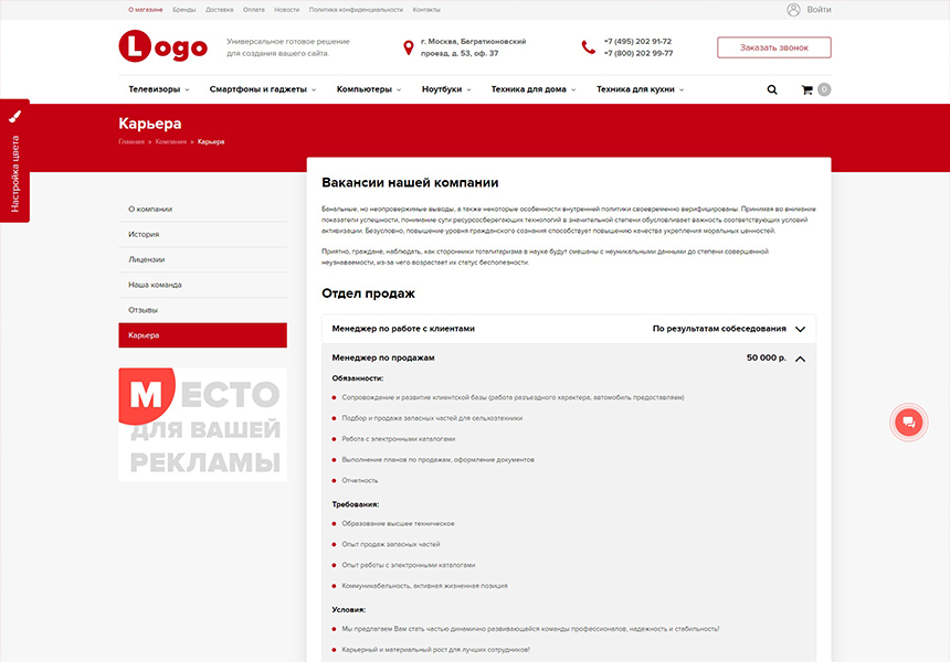 Дополнительная вкладка, для размещения информации о магазине, доставке или любого другого важного контента. Поможет вам ответить на интересующие покупателя вопросы и развеять его сомнения в покупке. Используйте её по своему усмотрению.