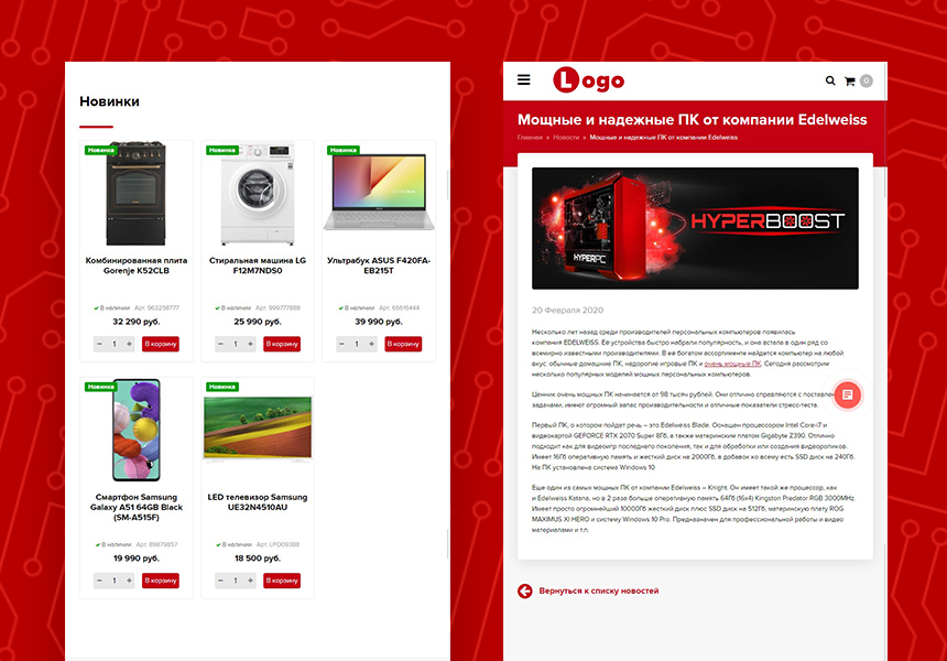 - Акции - классический список акций, без которых не обходится ни один сайт.