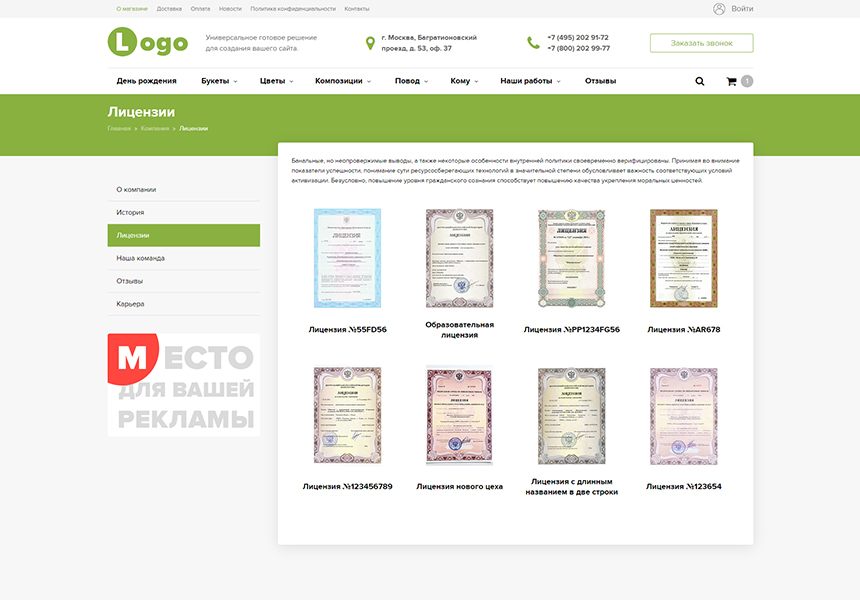 Дополнительная вкладка, для размещения информации о магазине, доставке или любого другого важного контента. Поможет вам ответить на интересующие покупателя вопросы и развеять его сомнения в покупке. Используйте её по своему усмотрению.