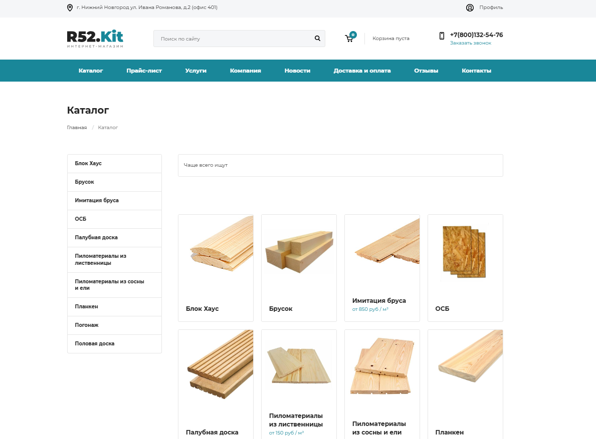 С R52.Wood позволяет создать функциональный онлайн-магазин по продаже строительных материалов.