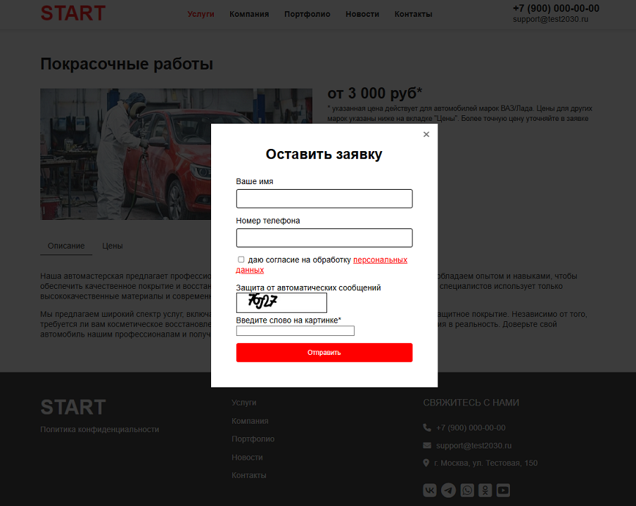 ALSYST: Сайт автосервиса с формой заказа услуги: Старт
