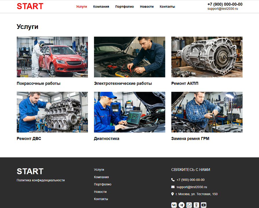 Решение, созданное для быстрого запуска сайта для автомастерской, автосервиса, шиномонтажа или автомойки. Адаптивная верстка, легкий дизайн.