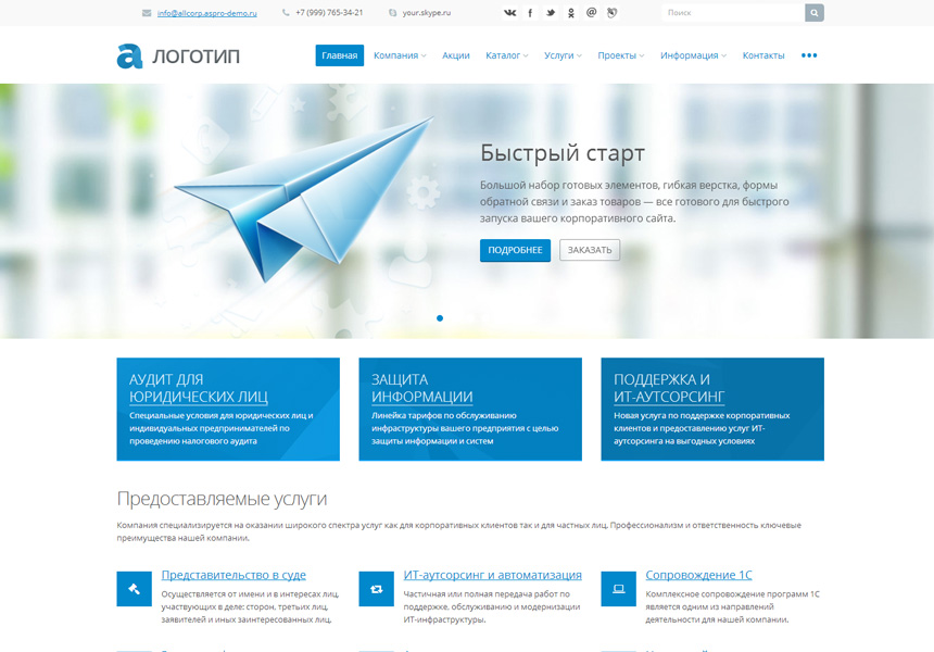 Профессиональное решение для разработки корпоративного сайта по любой тематике.