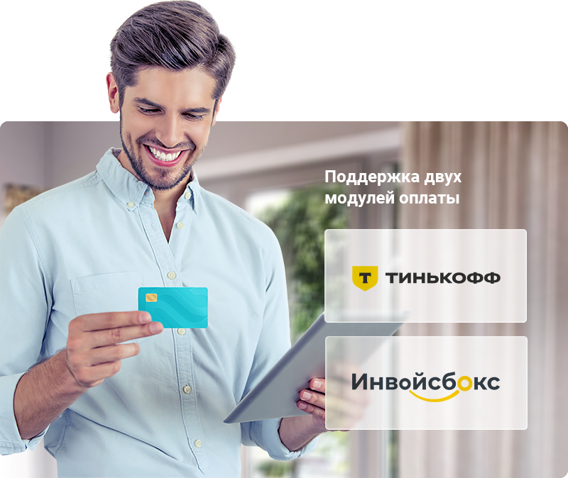Поддержка модуля онлайн-оплаты «Интернет-эквайринг Тинькофф прием платежей» для приема платежей прямо через сайт.