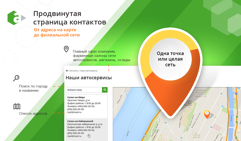 - карта автосервисов для крупной сети с маркерами объектов (сервис, мойка, шиномонтаж);