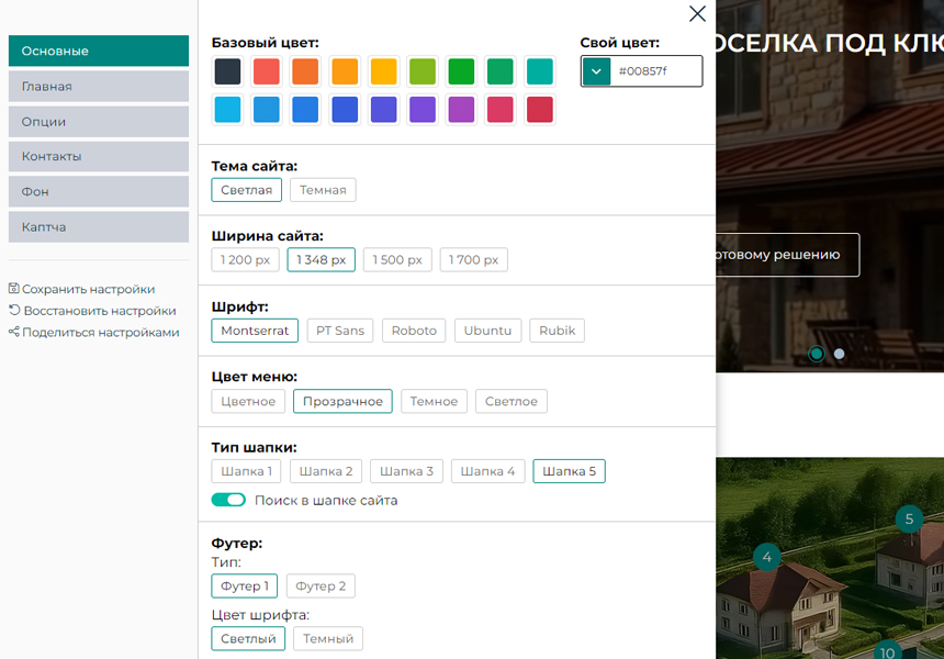 - гибкие настройки блоков сайта, основных параметров