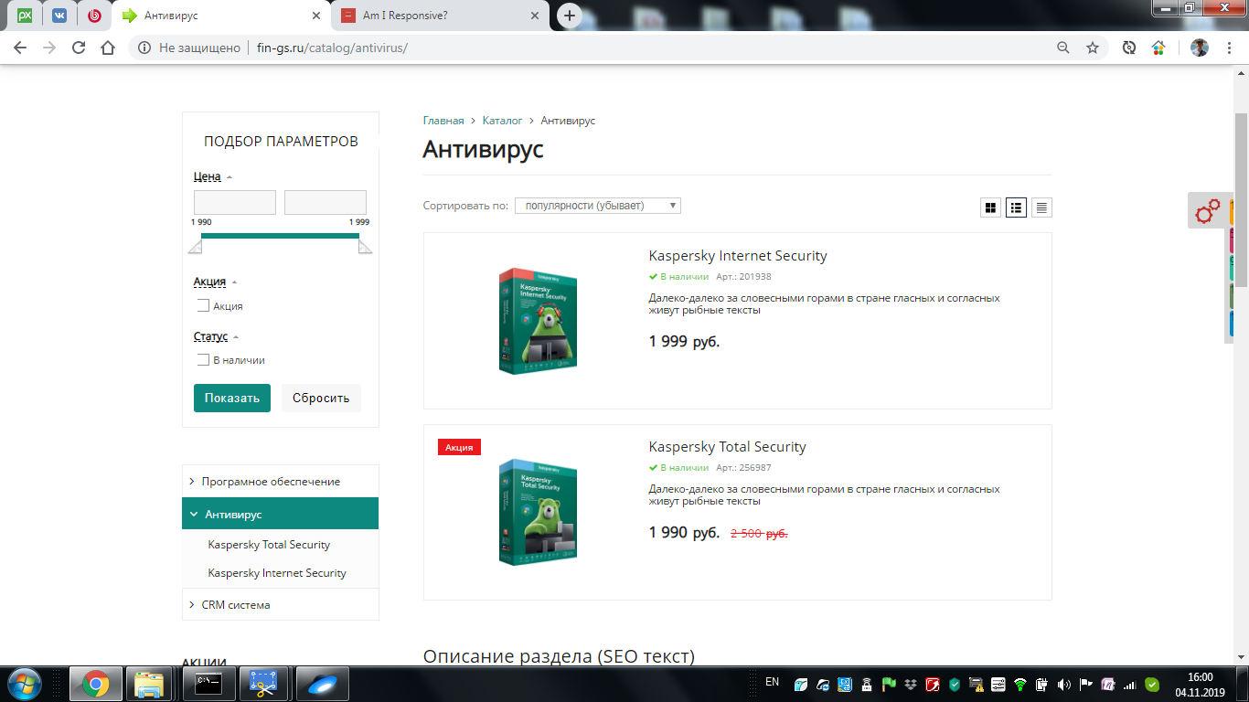 SEO-текст. Для разделов и подразделов настроен вывод SEO-текста