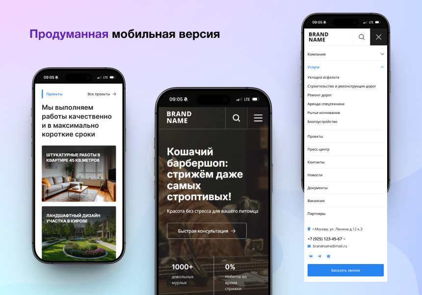 Вы можете создать сайт для компании в любой сфере: от инженерии и недвижимости до красоты