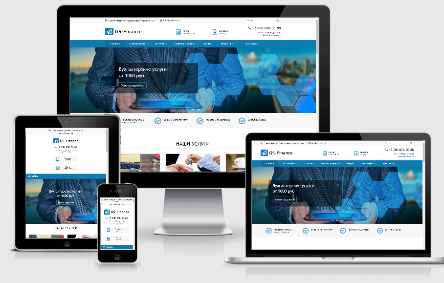 Адаптивный сайт. Мы создали отзывчивый адаптивный сайт, который отлично будет смотреться на всех устройствах: мониторы, ноутбуки, планшеты, смартфоны, и др. гаджеты