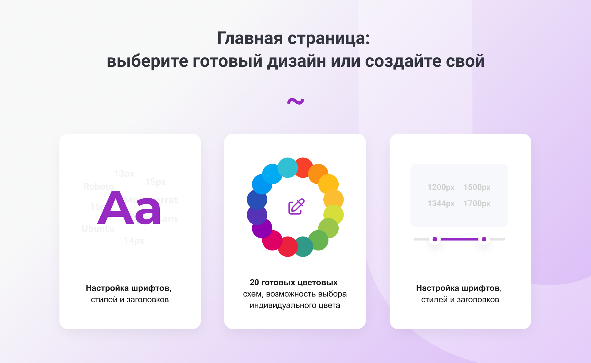 Мы предусмотрели более 20 цветовых схем: выберите одну из готовых или создайте собственную.