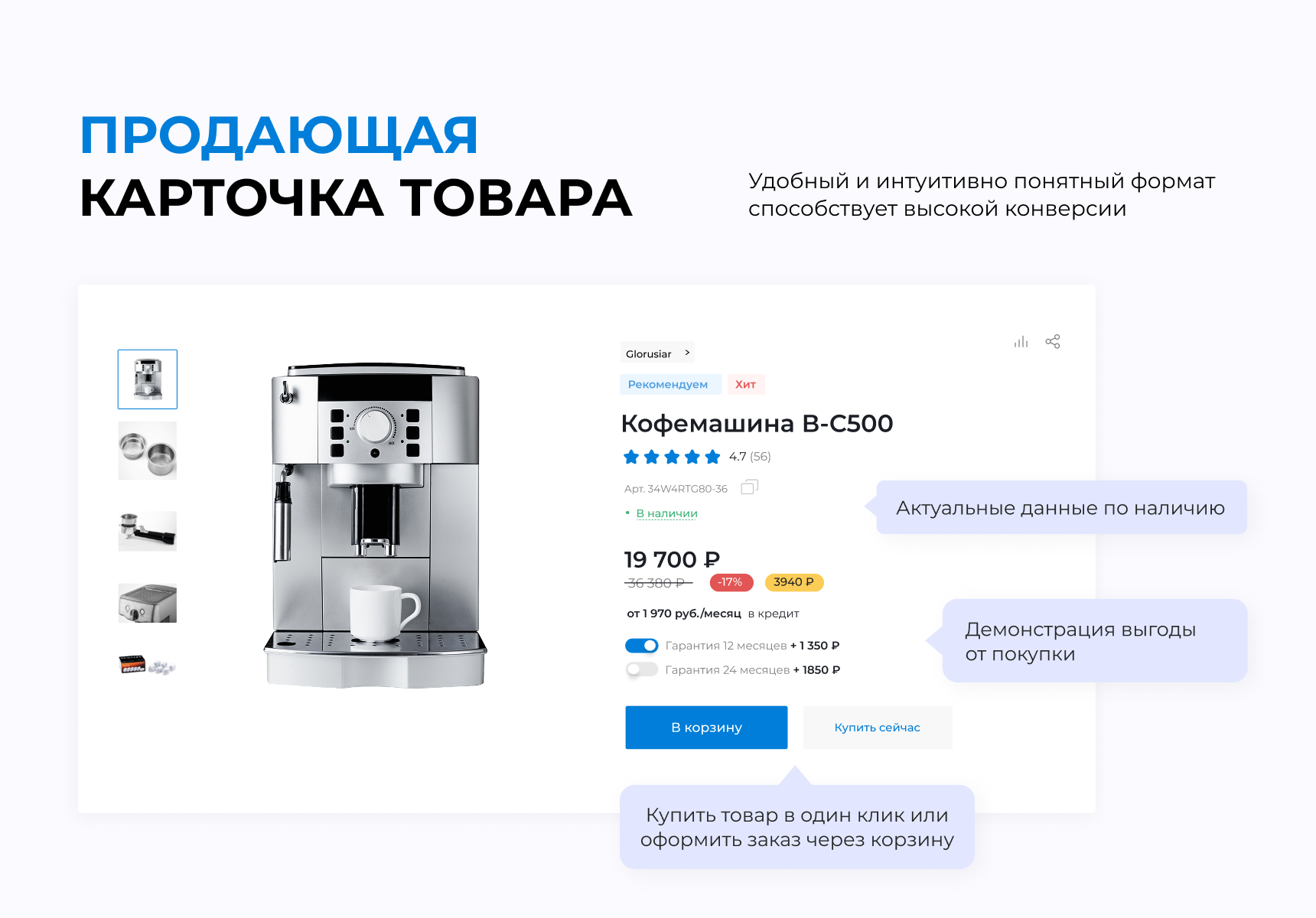 Продающая карточка товара | Удобный и интуитивно понятный формат способствует высокой конверсии |