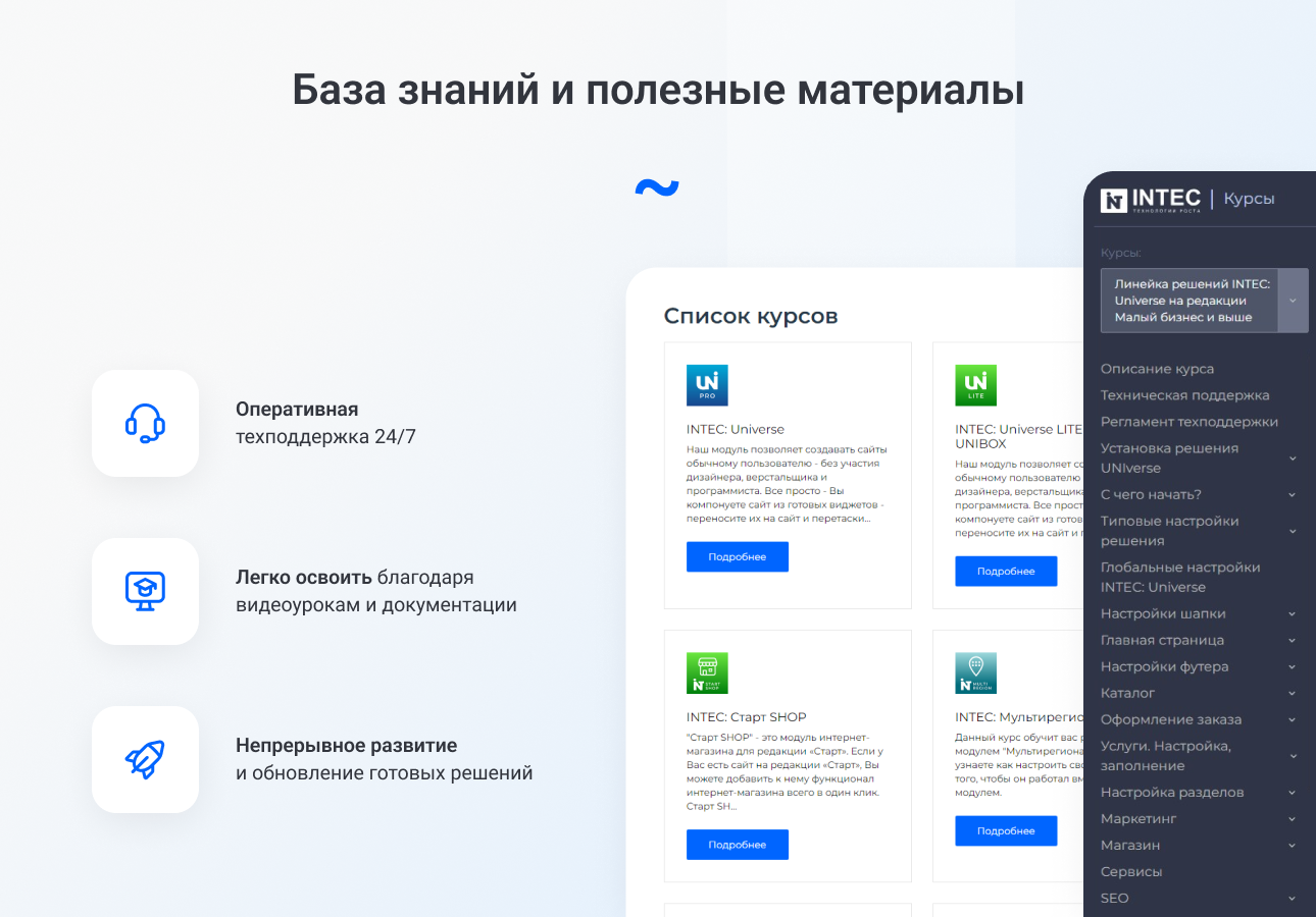 - Модуль INTEC.SEO для автоматического продвижения в поисковиках.