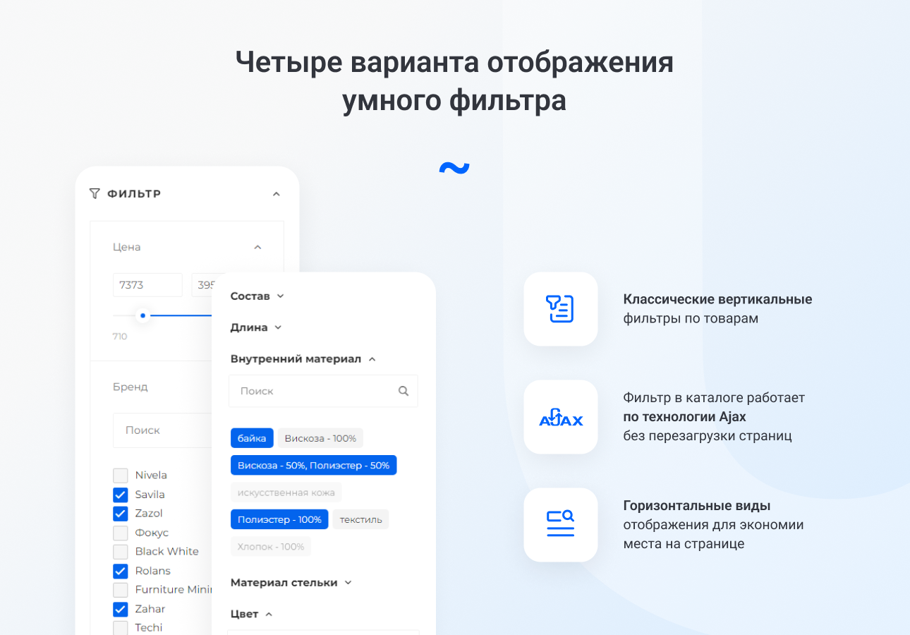 - Динамический вид SKU. Все вариации продукта в одном месте.