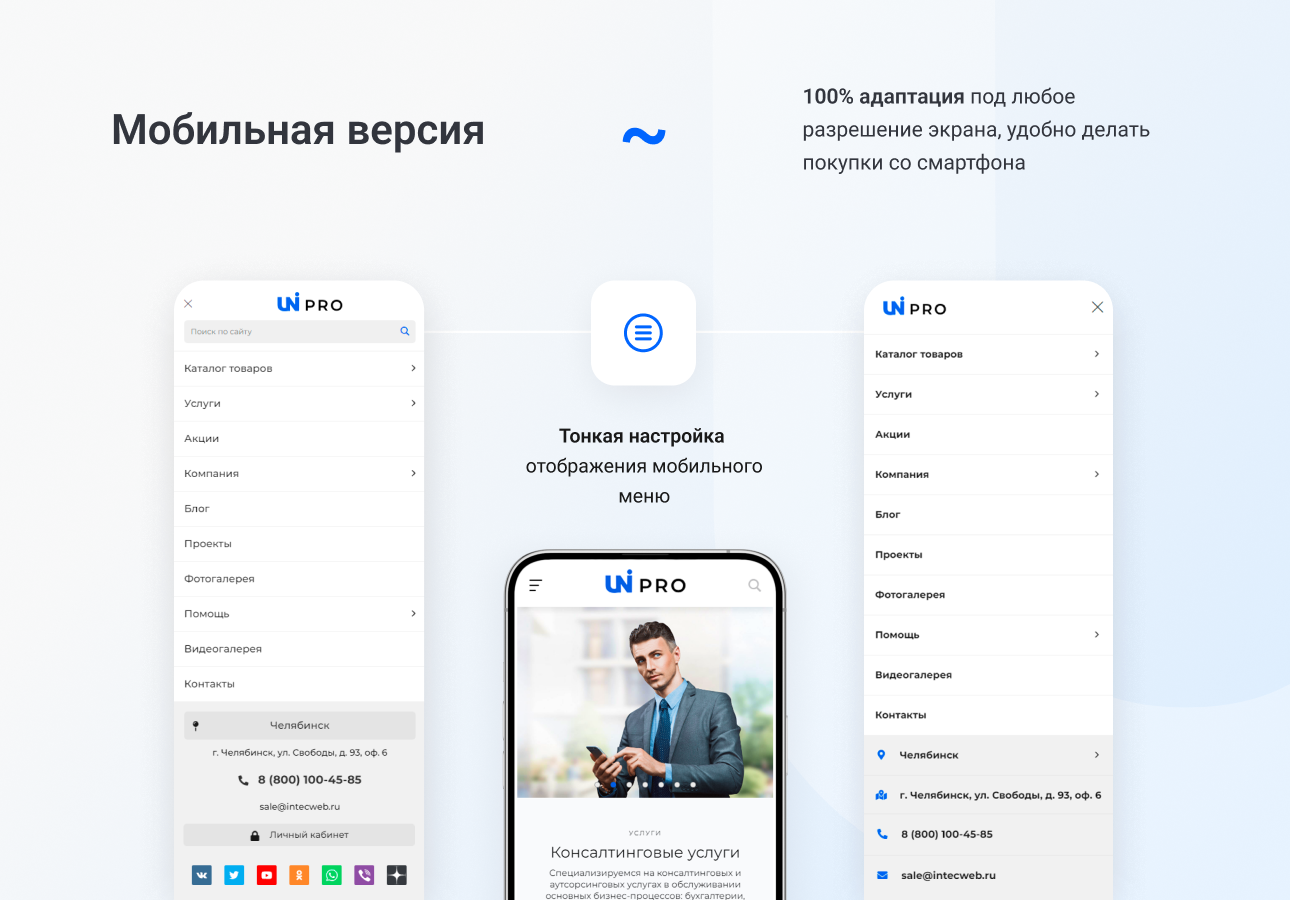 Готовые сайты на линейке IntecUniverse универсальны и без труда адаптируются под любой тип товаров: