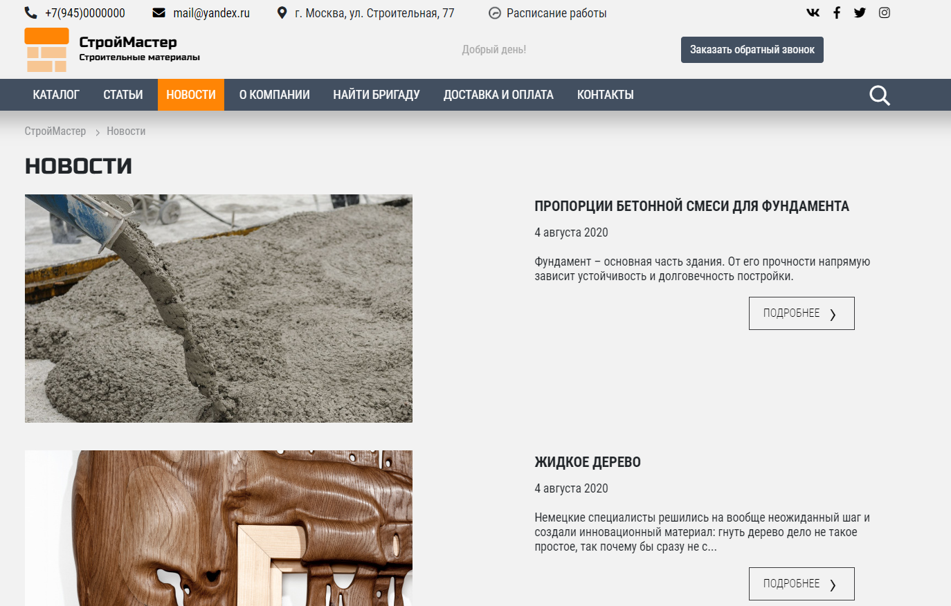- Адаптивная верстка, благодаря которой сайт автоматически подстраивается под любое устройство.