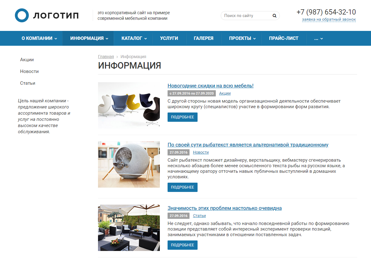 Колибри: Корппро - это профессиональное коробочное решение для создания корпоративного сайта по любой тематике: производство, строительство, розничная/оптовая торговля и многие другие.