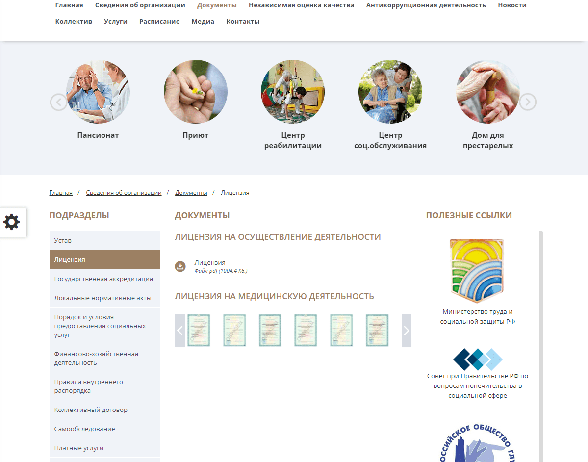 - Пансионат, санаторий, дом отдыха, в том числе для ветеранов