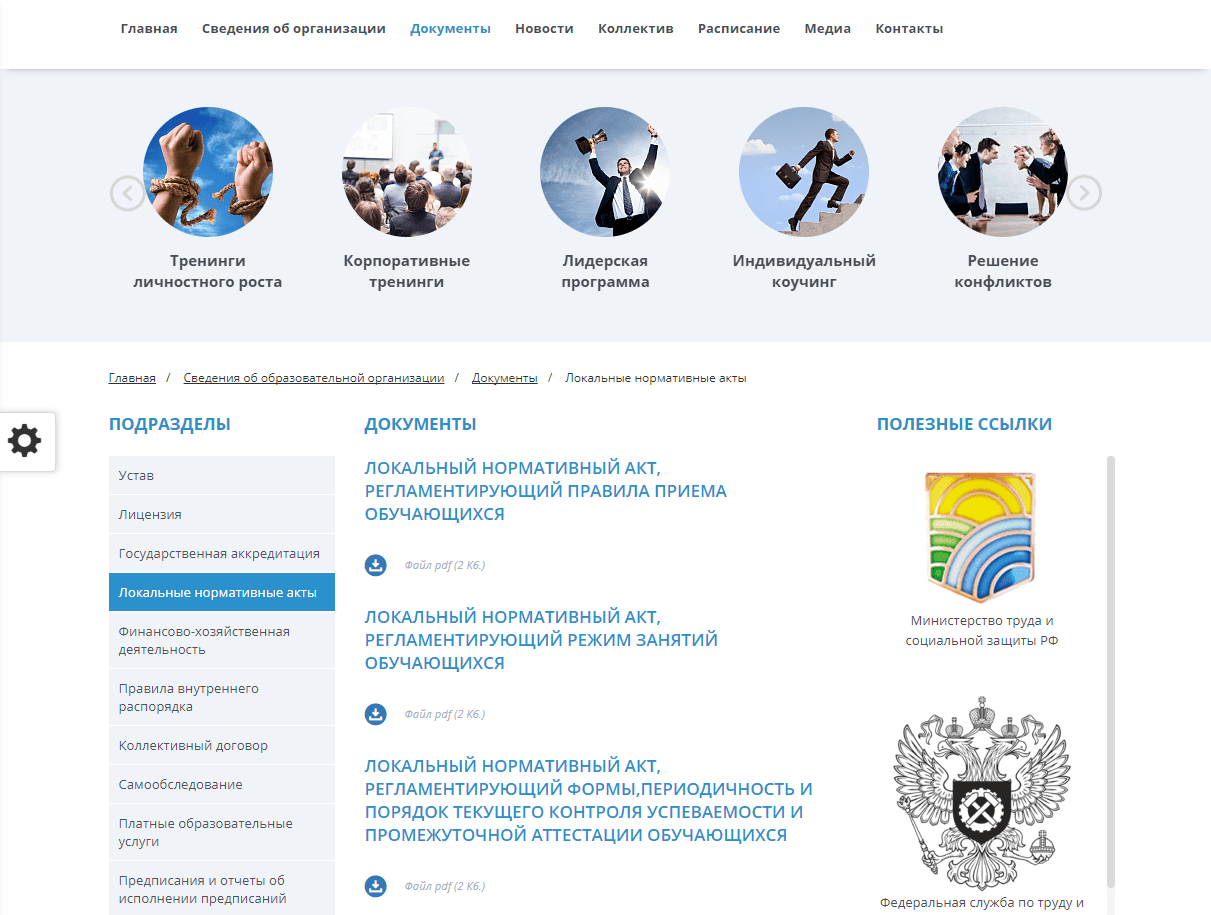 Мибок: Сайт тренинг-центра: Старт