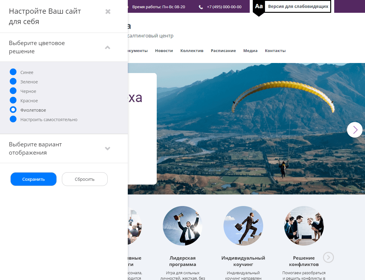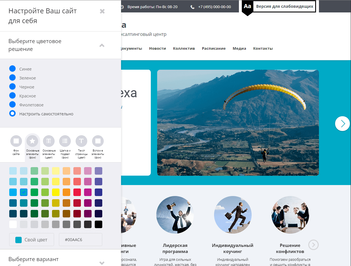 - Несколько готовых цветовых схем