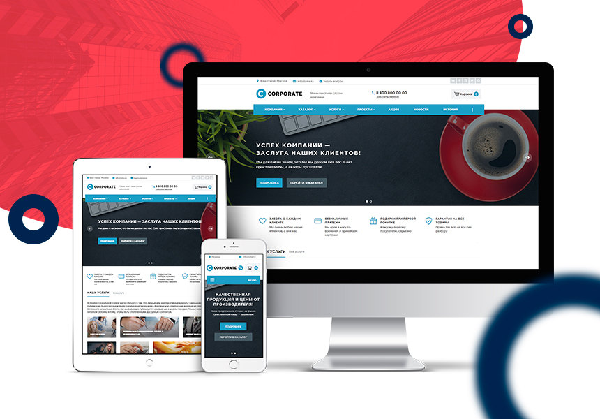 Современный дизайн с широкими возможностями настроек для уникального оформления веб-ресурса. Адаптивная верстка как альтернатива отдельной мобильной версии для корректной работы сайта на любых устройствах.