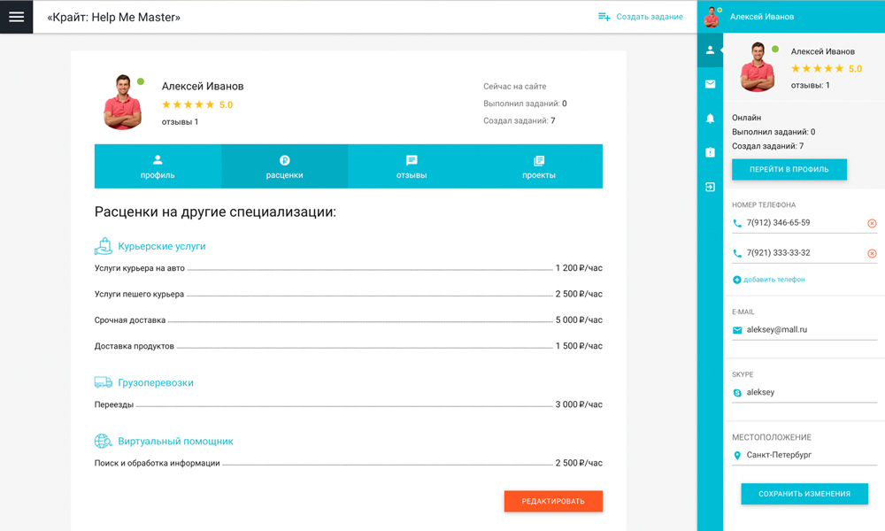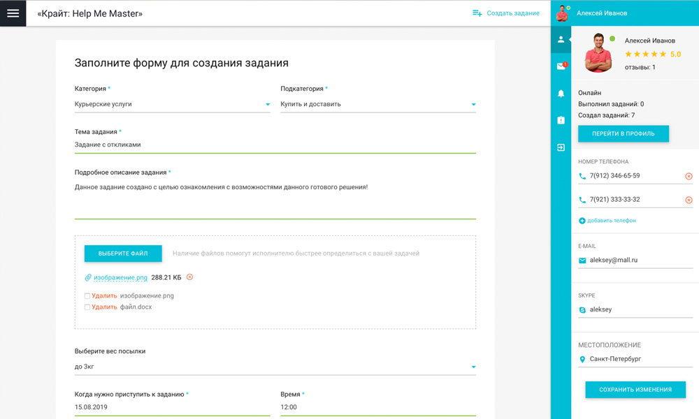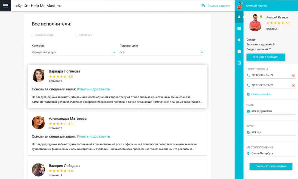 Сервис «Крайт: HelpMeMaster» позволяет находить специалистов и помощников для решения бытовых и бизнес-задач. Заказчикам — найти исполнителя, разместить проект или вакансию. Исполнителям — создать портфолио, найти проект и предложить услуги. С помощью отраслевого решения «Крайт: HelpMeMaster» вы сможете запустить сервис поиска исполнителей, биржу фриланса, портал проектов и услуг, сервис поиска специалистов , мастеров , помощников, сервис поиска работы, сервис поиска переводчиков, сервис поиска попутчиков, биржу прроектов и услуг. |