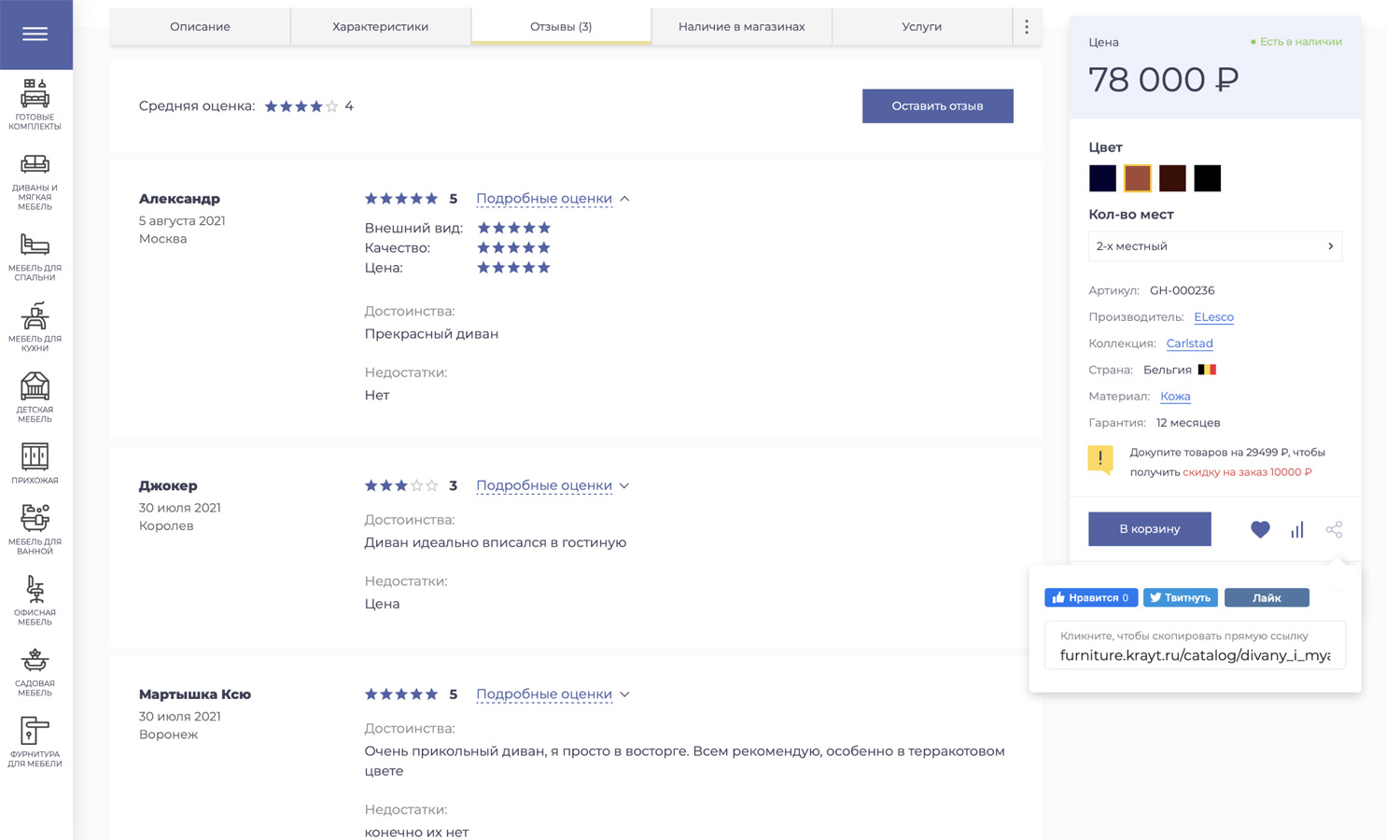 Специально для решения «Крайт: Мебель.Furniture» была разработана продающая карточка товара.