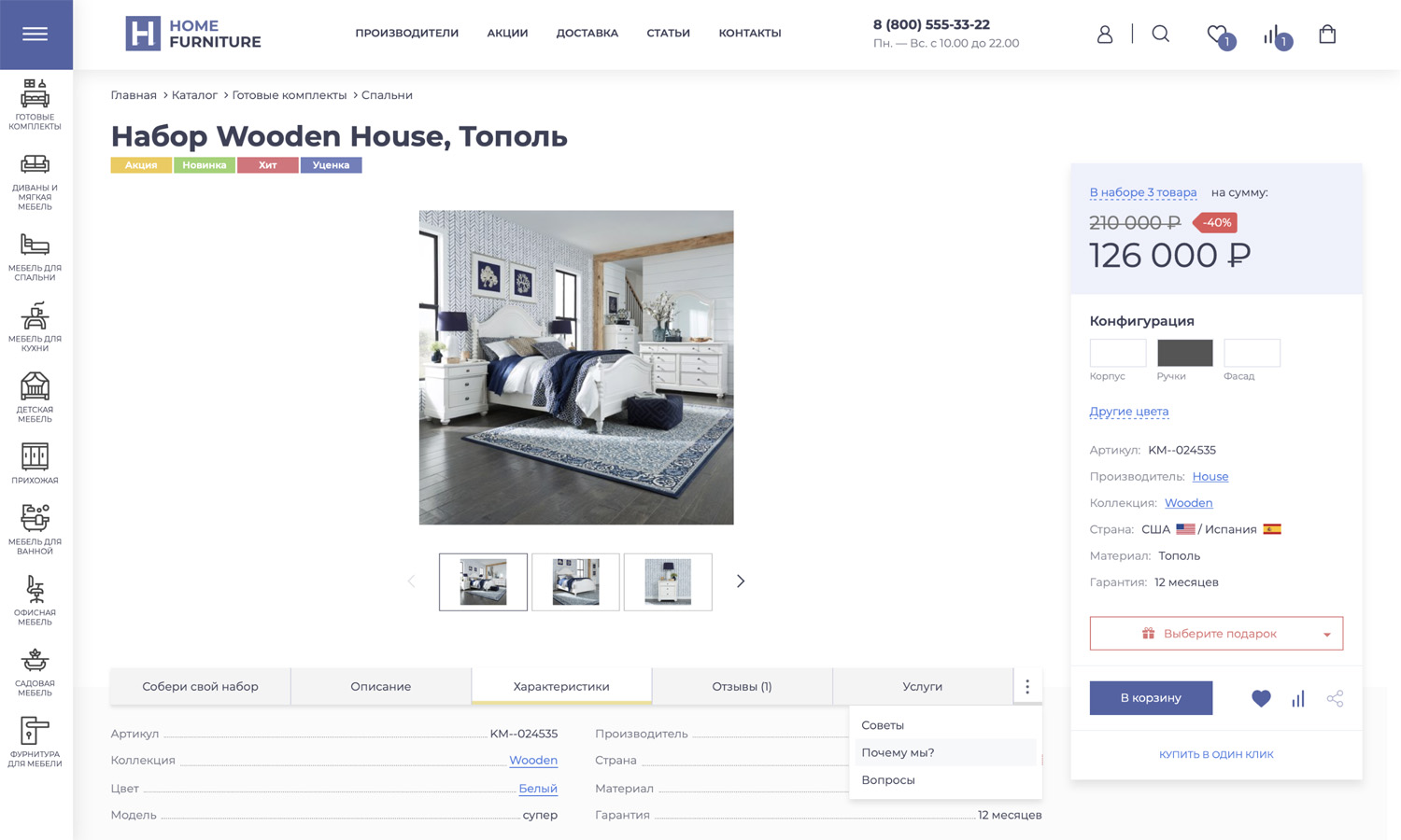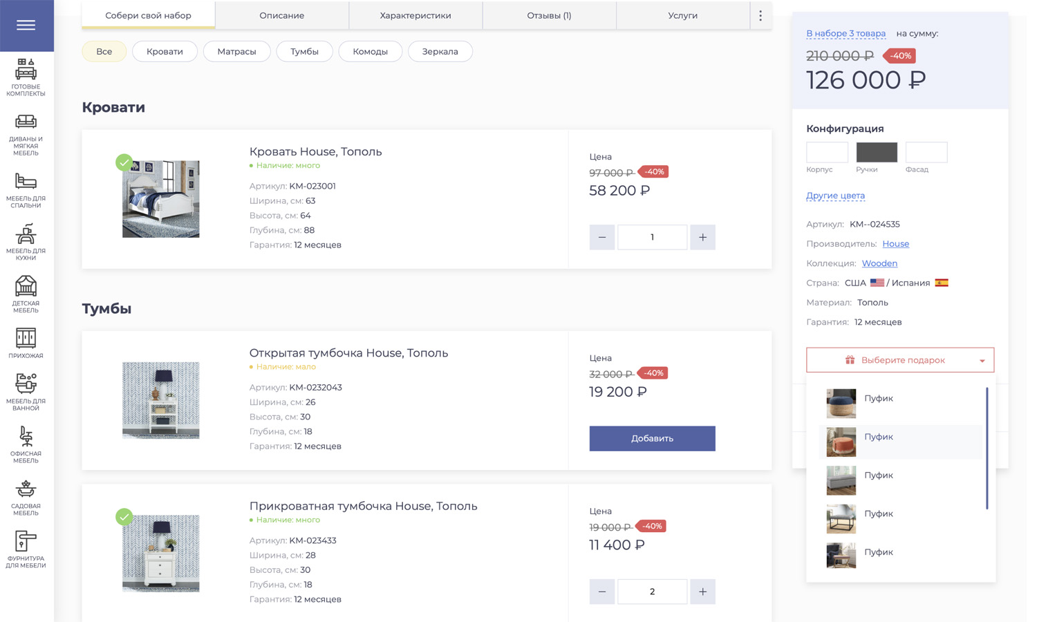 Многие товары в мебельной тематике предлагаются в виде готовых комплектов