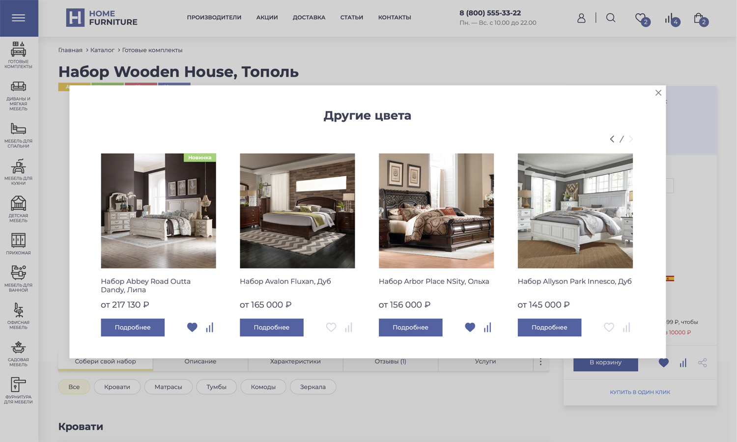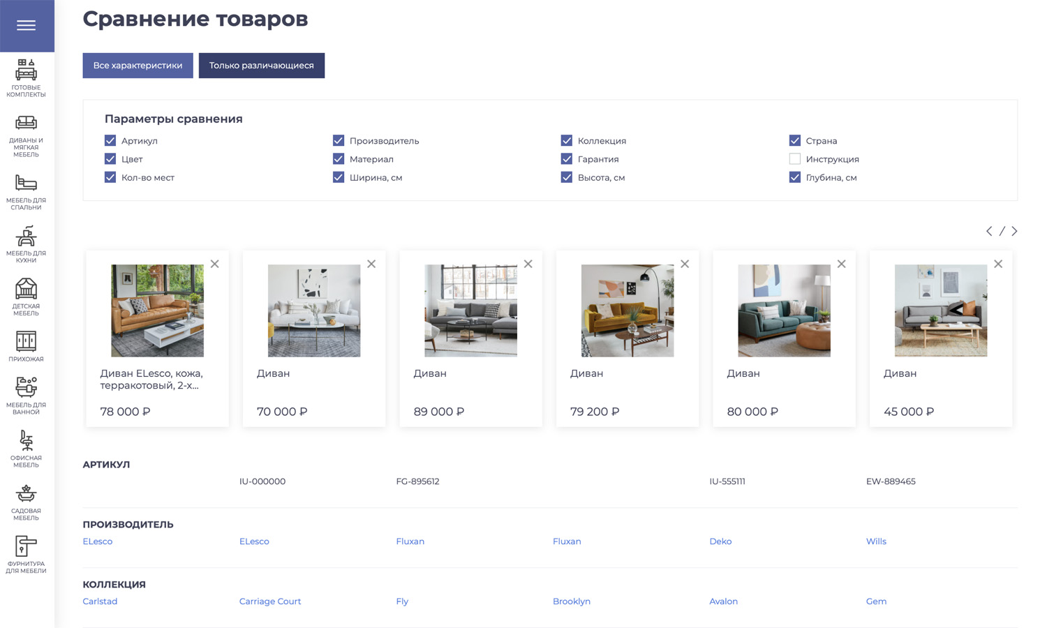 Решение «Крайт: Мебель.Furniture» позволяет сравнивать товары в рамках раздела,