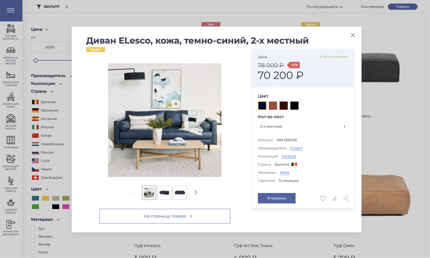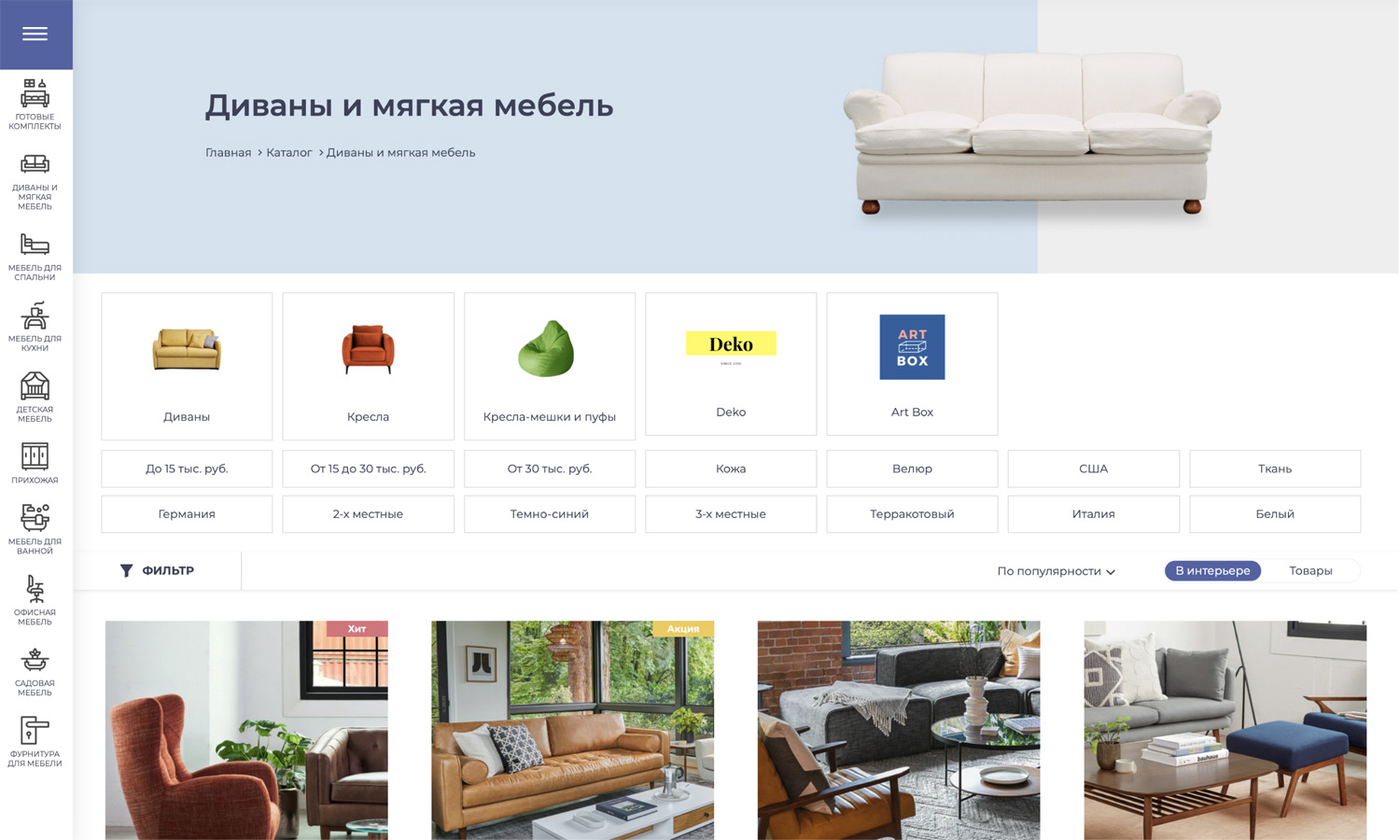 При покупке мебели очень удобно иметь возможность просматривать товары в интерьере.