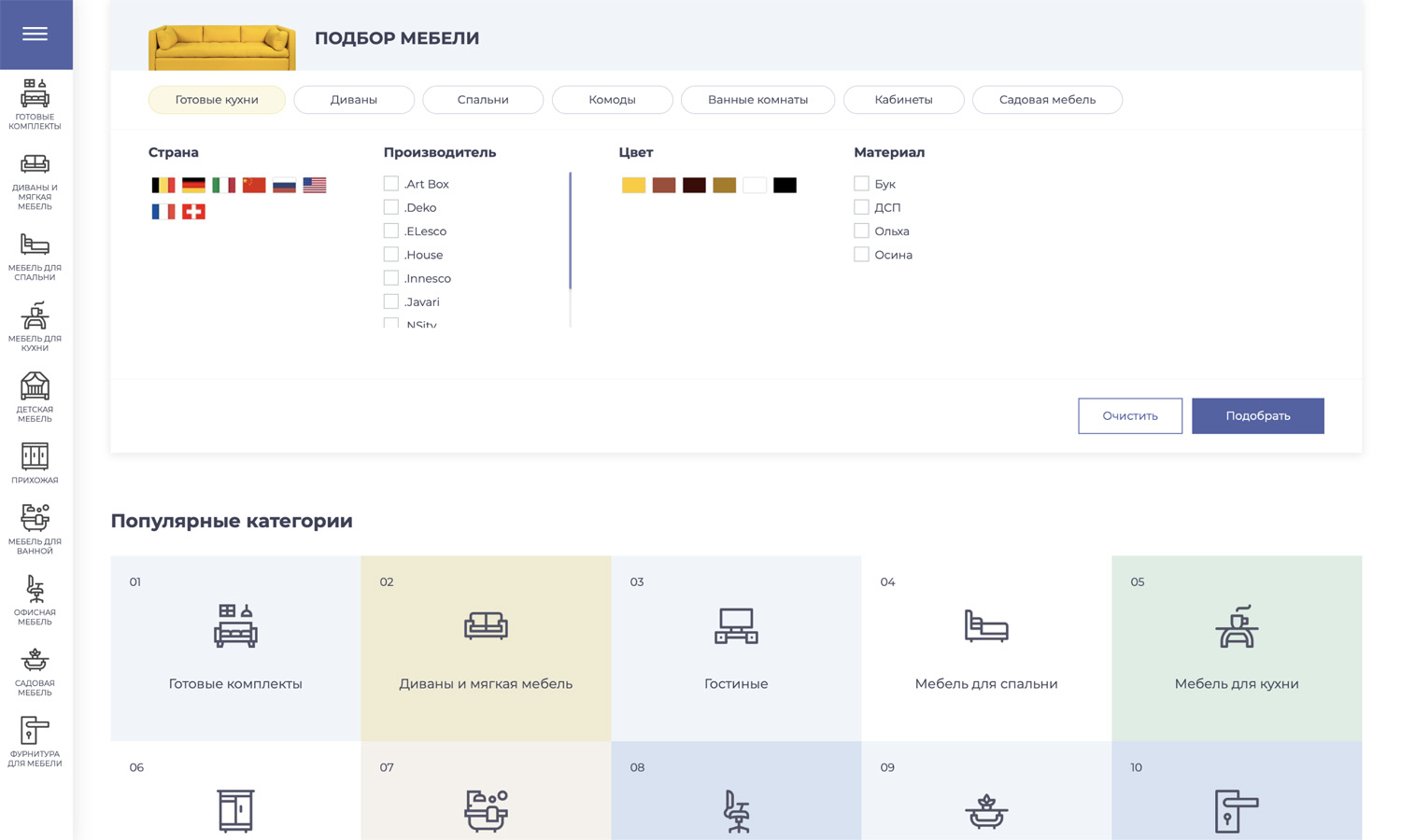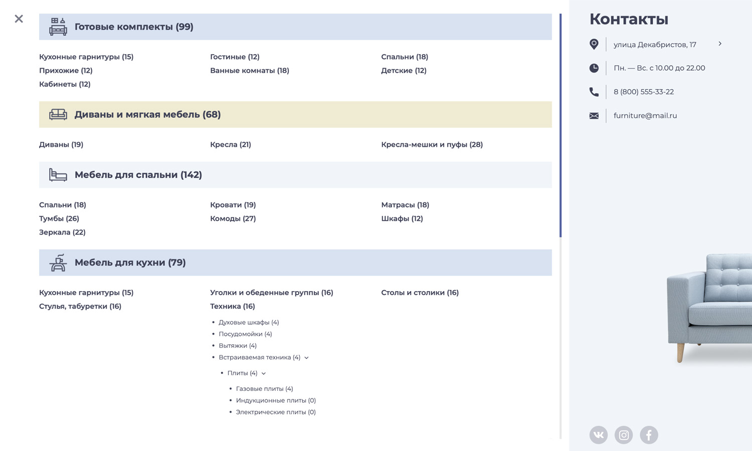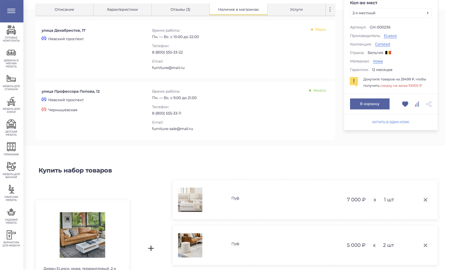 (кухни, гостиные, спальни, кабинеты и др.) или взаимодополняющих товаров (диван, кресло и пуфик и т.п.)